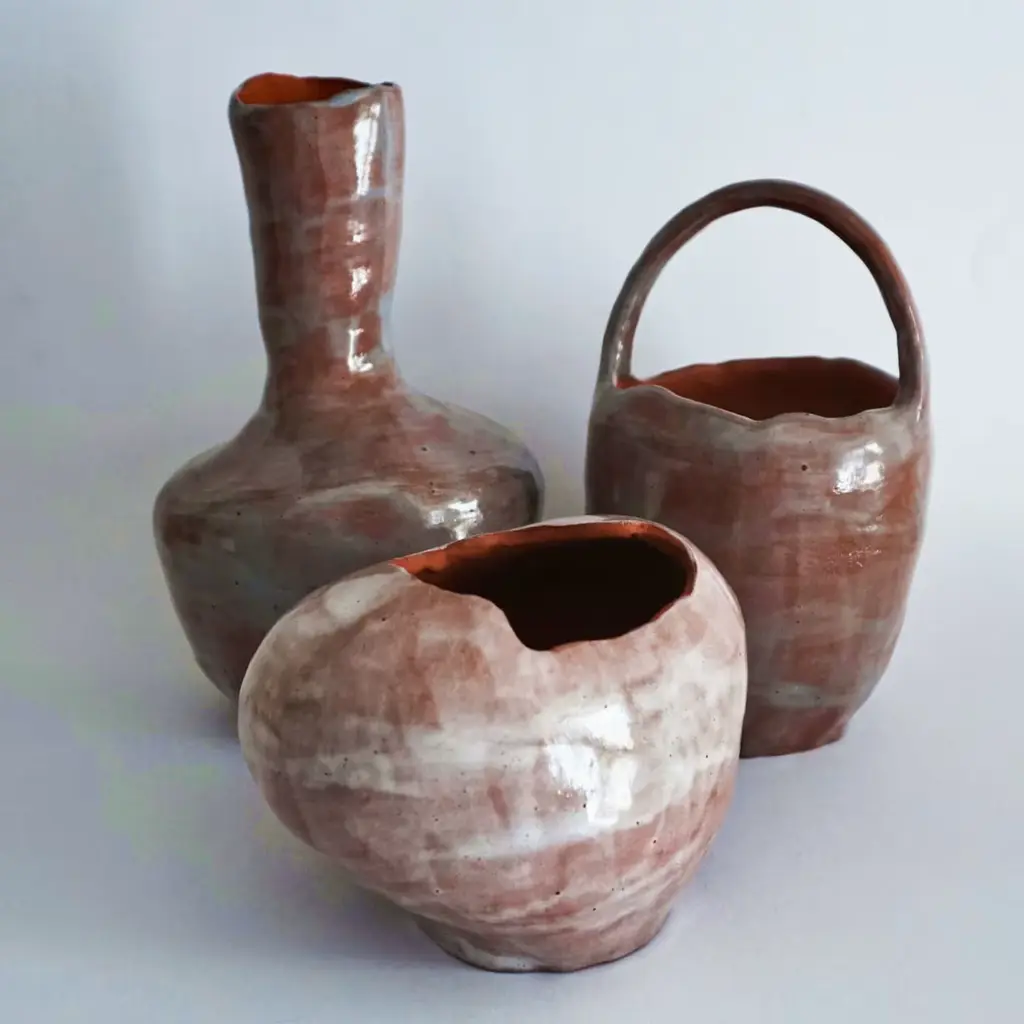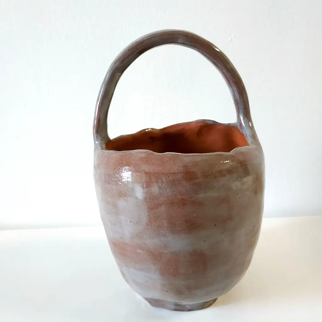Mimicking the silhouette of a handbasket, this stupendous vase will make for an iconic and distinctive accent to a refined contemporary interior. Showcasing splendid signs of traditional craftsmanship, it is handmade by ceramist Cristina Cavallari with red clay, and finished with a semi-polished gray enamel.