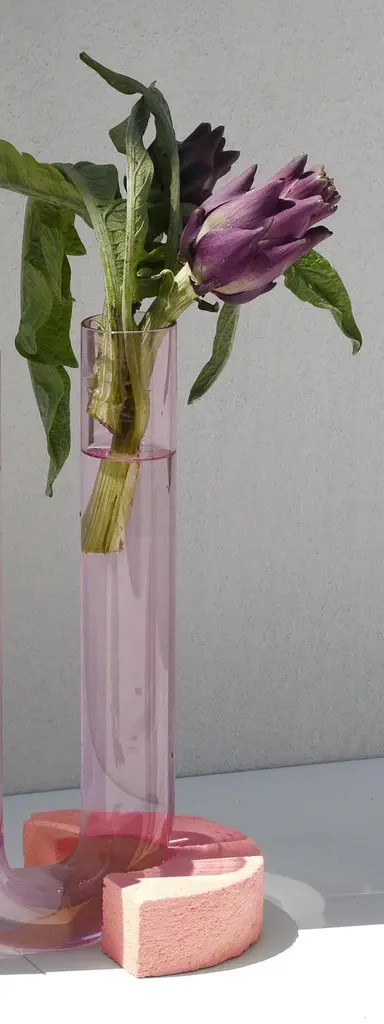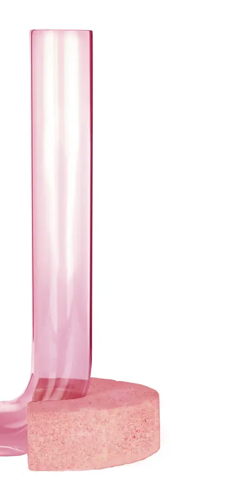 Pink-Pink Cochlea della Consapevolezza Soils Edition vase by Coki BarbieriDimensions: W 24 x D 14 x H 30 cm.Materials: Handcrafted stone made with Matera stone fragments, sedimentary rocks of the Italian Apennines and pure water, pink mineral pigments from Italian soils, pink painted borosilicate glass.Cochlea della Consapevolezza - SOILS EDITION - Pink-PinkCochleae vases collection is inspired by the life cycle of the snails and captures their growth when the invertebrate's body (represented by the curved glass) develops upwards from the embracing shell symbolized by semicircular shells handcrafted from fragments of historical stones only found in Matera (Città dei Sassi, UNESCO World Heritage, European Capital of Culture), recovered and reprocessed following a sustainable production cycle. The surface of the handcrafted stone piece is treated with an ecological substance developed by COKI. The glass and stone components are notglued and can be separated, disassembled, and ready for new uses.Soils edition is made with colored pigments of Italian soil.A precious objects collection made in Italy with natural and vegan origin materials, conceived by architectural and product designer Coki Barbieri and created by the local craftsmen to expand a new slow living awareness and surround oneself with a few objects, capable of staying alongside us over time.The climate emergency and increased future anxiety push our work to imagine alternative ways of living, producing, and consuming. For that Coki Barbieri uses notions of geology, chemistry, and design culture to create new products (and materials) from fragments and waste from natural products (such as stone and minerals).Coki Barbieri established her eponymous studio-workshop in Rimini in 2017, bringing to life a sustainable way of conceiving the product design for home. Nature inspires her environmentally conscious creations, which are imbued with emotional energy while maintaining their aesthetic impact and practical functionality. Coki collaborates with talented Italian craftsmen to produce one-of-a-kind homeware objects capable of unlocking new synergies between concepts, materials, and use.