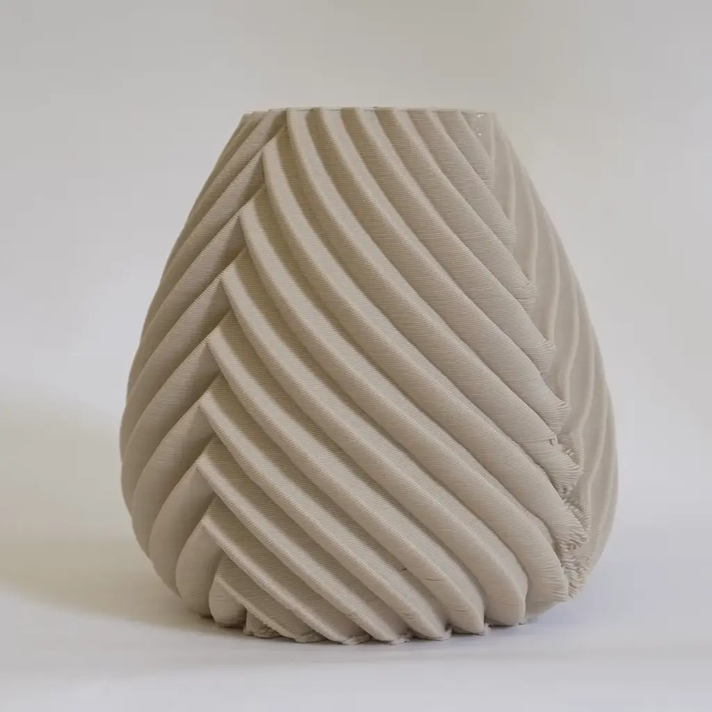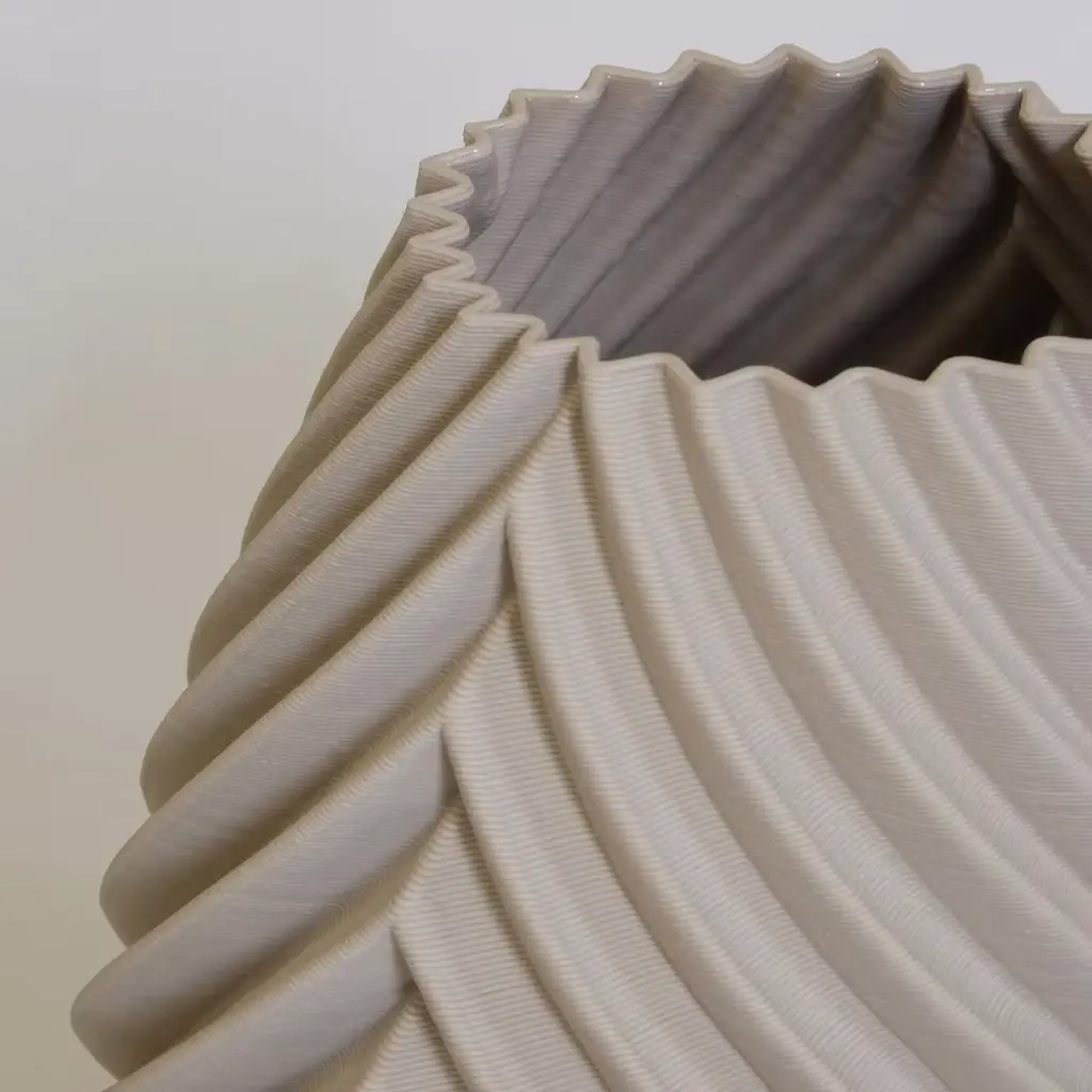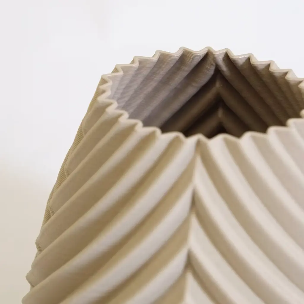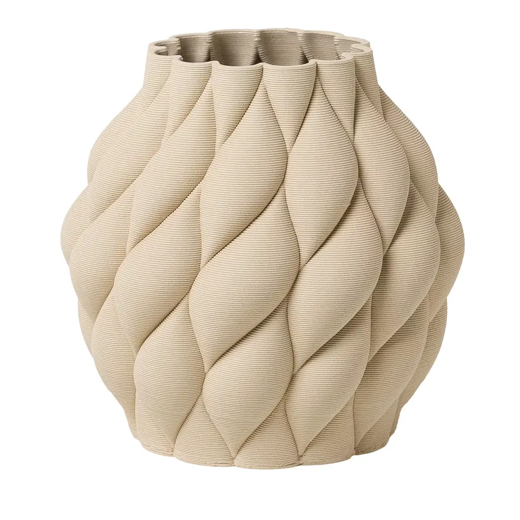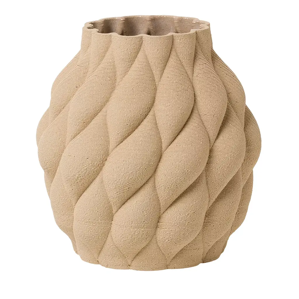 This superb vase in fine porcelain (1mm thick) is the result of a clever combination of artisan crafting steps and cutting-edge 3D printing technology, achieving its characteristic pleated texture. The exterior is offered in a raw, natural finish while the interior is finished with a transparent glaze for excellent waterproofing. Slight differences from the picture are to be expected and cherished.