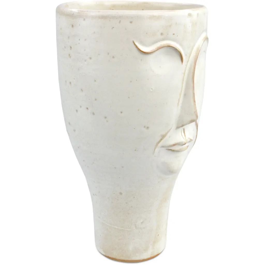 The Poet Medium Vase is a whimsical hand-thrown design inspired by drawings artists like Jean Cocteau and Pablo Picasso would sketch when an interesting profile caught their eye in the famed cafes of Paris. Made of terracotta by the women at the border of Burma and Thailand who create many unique accessories and lamp bodies, the milky white vase is poetic in design.
