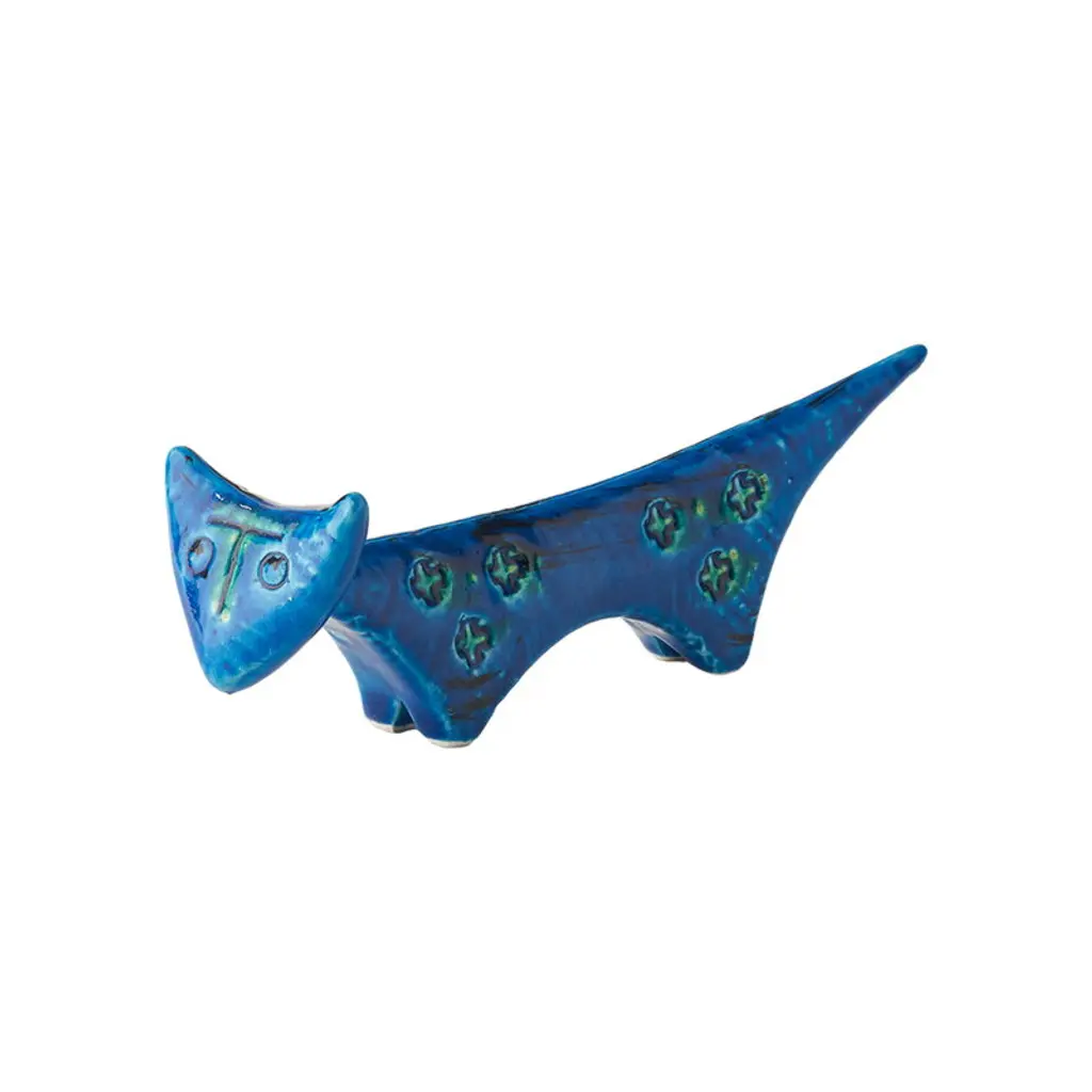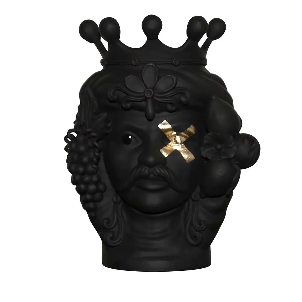 This unique vase will make a striking visual statement when placed in any room in the home. Its base features a rectangular shape with a triangular arch in its bottom center, giving the appearance of two legs. On the top, the addition of an eye was placed in its center (evoking the giant mythological creature that gives the object its name), topped with a decoration, which is covered with a layer of pure gold. This vase was entirely crafted in ceramics and is an original design by Riccardo Dalisi.