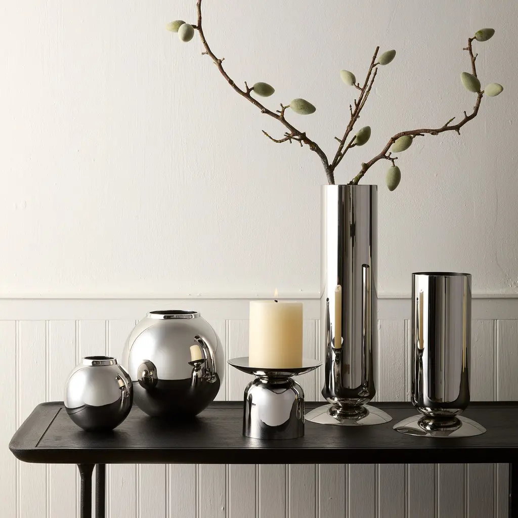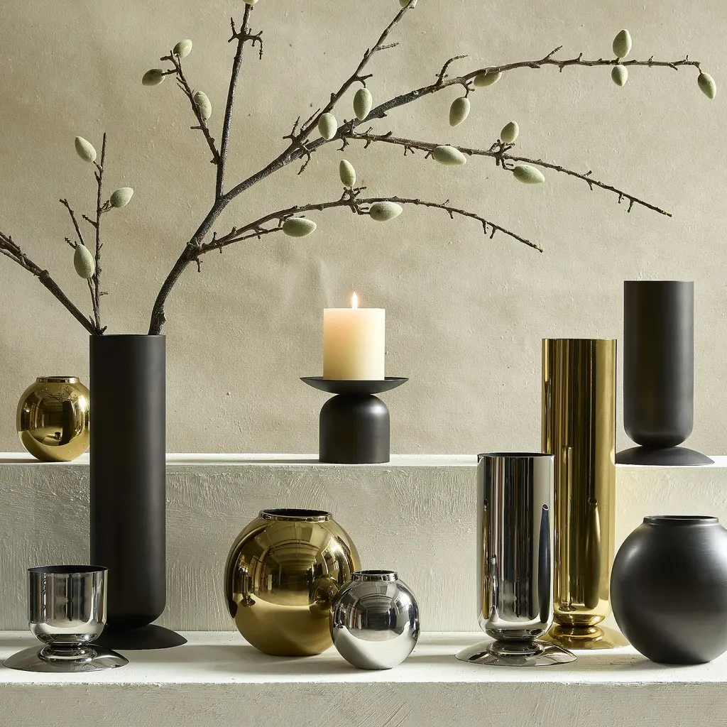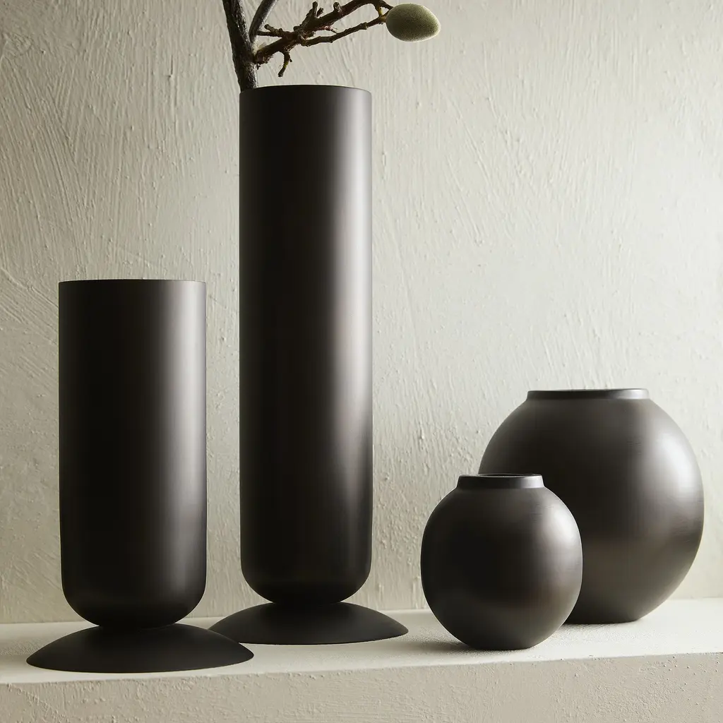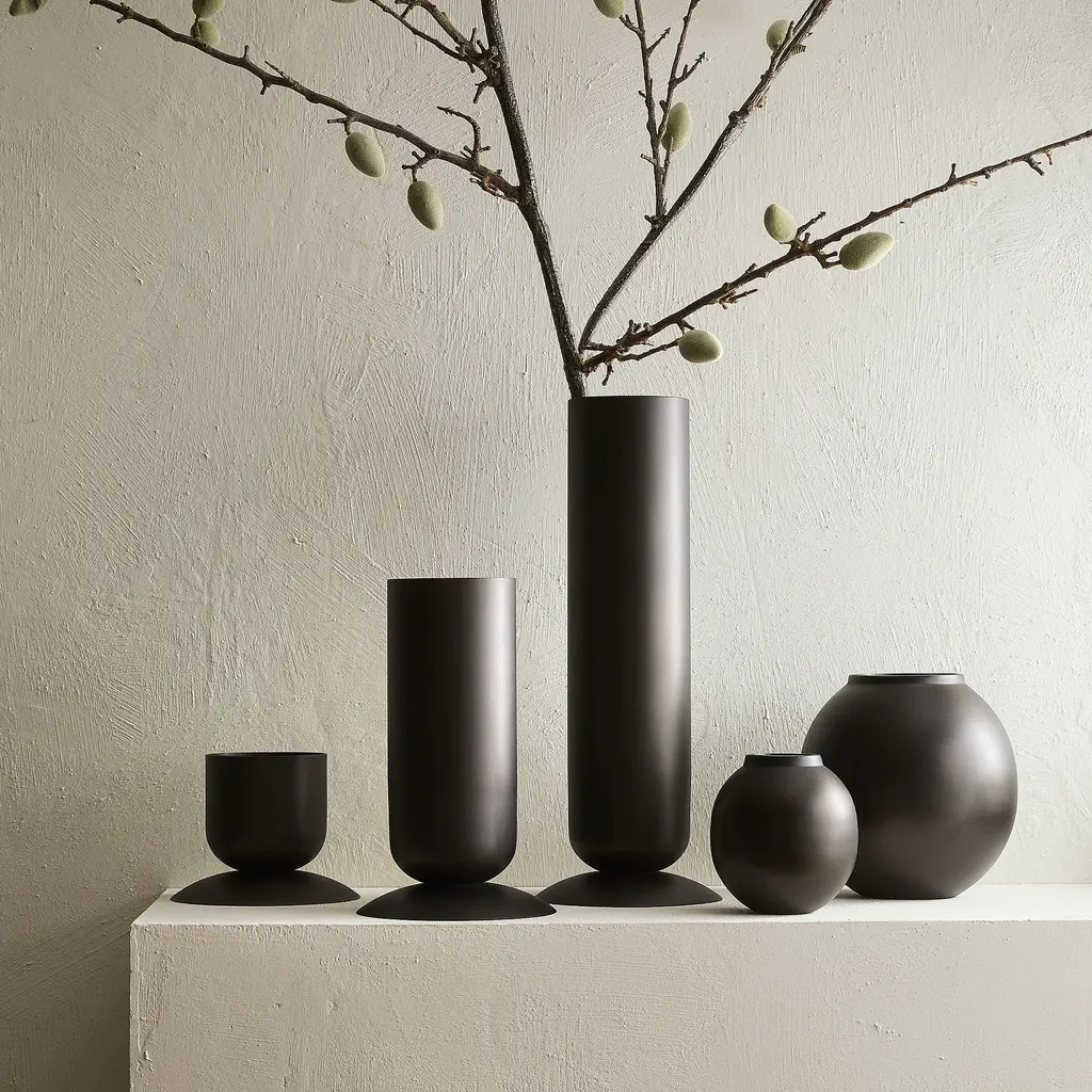 The simple materials and shapes complement nearly any home style. Decorate your tables and shelves with one piece or a few different shapes and sizes. The vase can be flipped over and used as a pedestal for a candle.