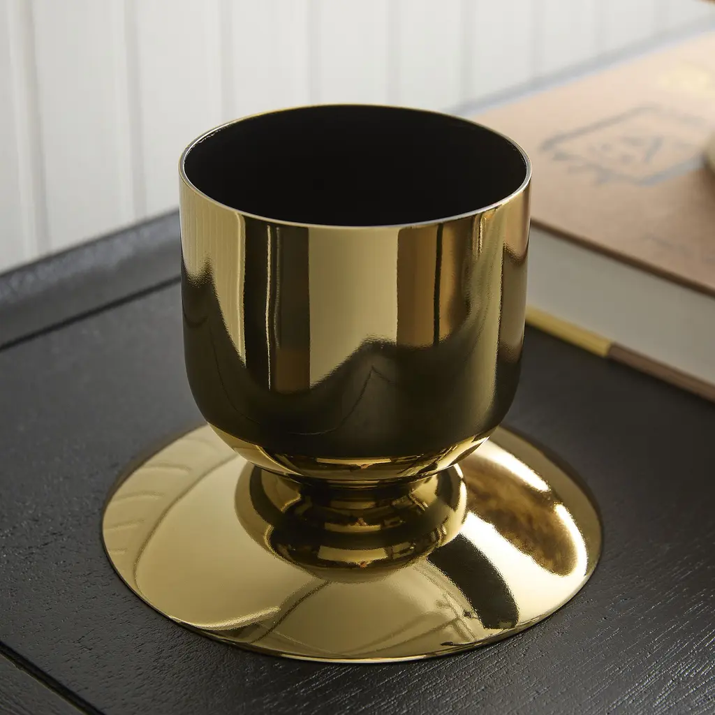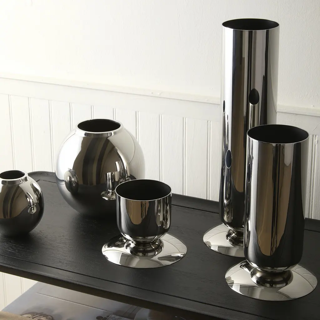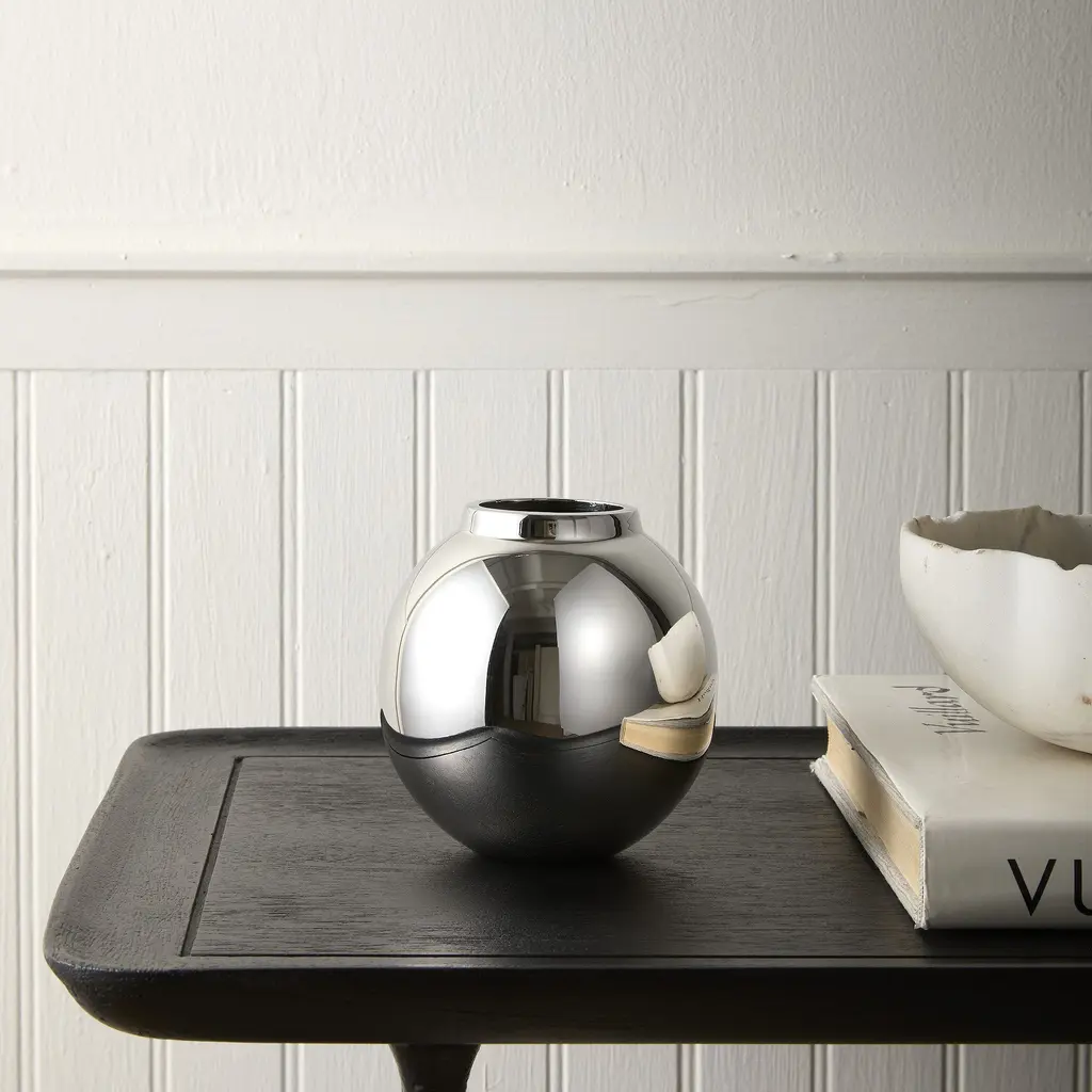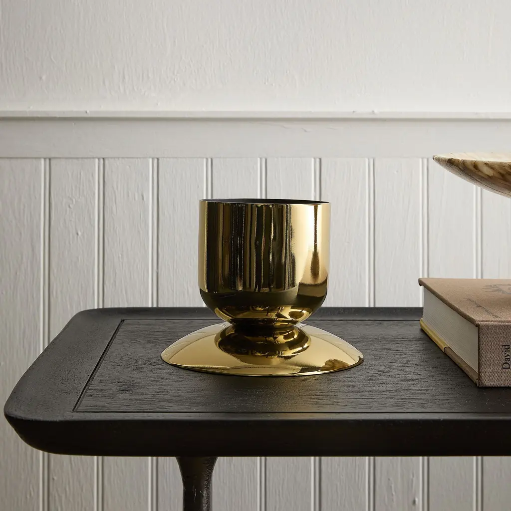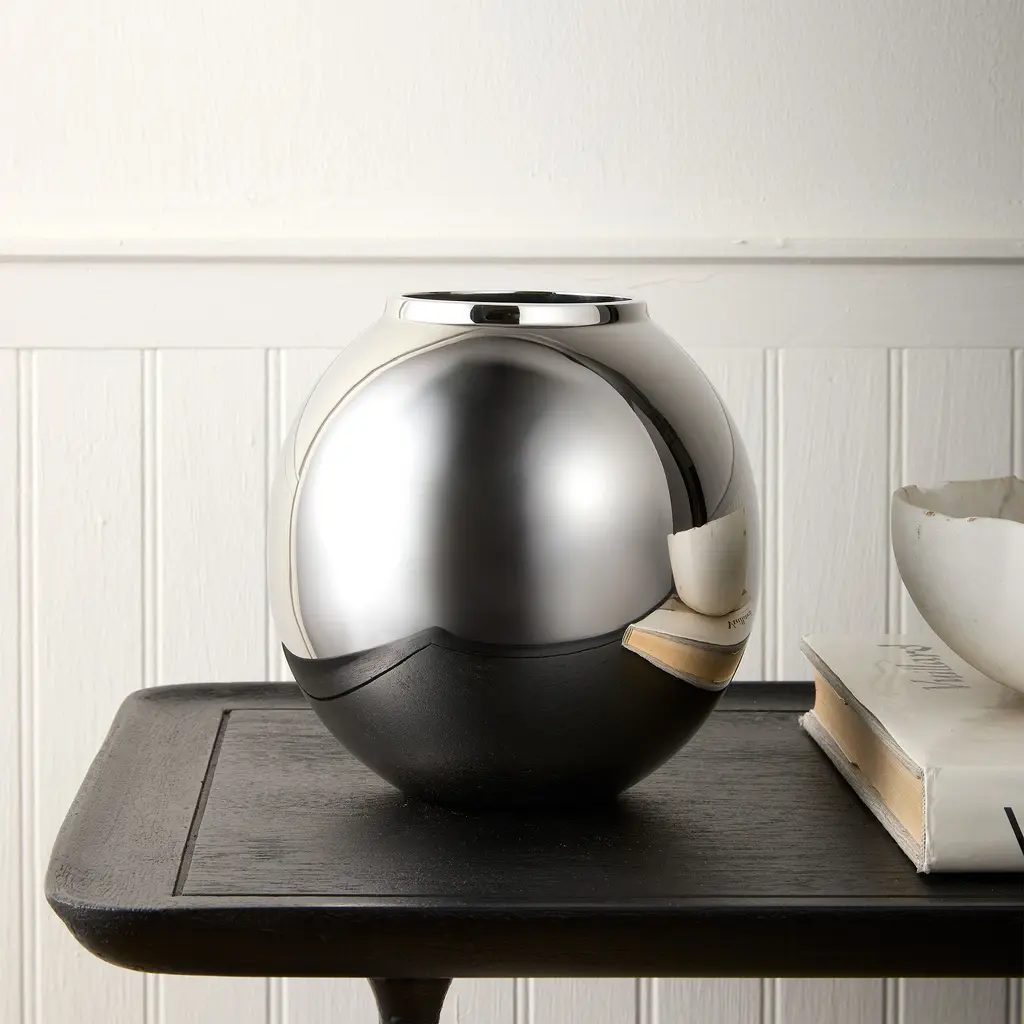 The simple materials and shapes complement nearly any home style. Decorate your tables and shelves with one piece or a few different shapes and sizes. The vase can be flipped over and used as a pedestal for a candle.