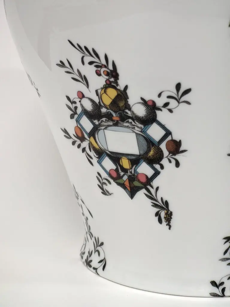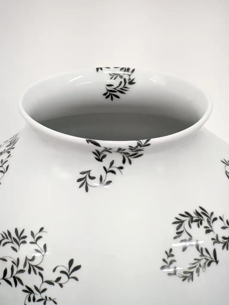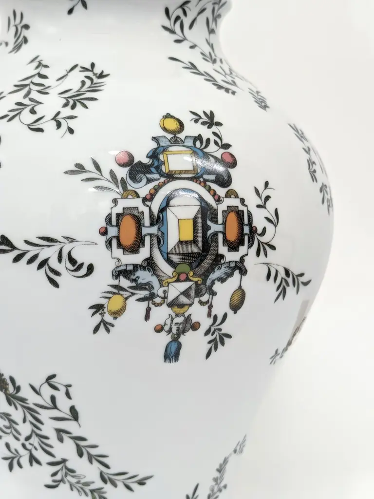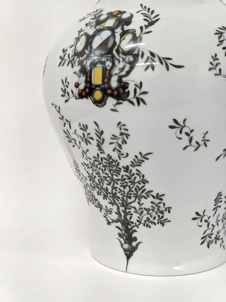 The new Pompei porcelain collection by Grand Tour by Vito Nesta brings the Grottesche wall decoration back to life in a contemporary key. Ancient designs are taken and declined on these porcelain vases to create an elegant and unique decoration. Natural elements and jewellery come together to create stories, decorations and geometries that fill the eye and intrigue the mind. This collection succeeds in being transversal, adapting both to regal and elegant environments and to more formal settings, elevating them with flair.Measure: H 27cm.
