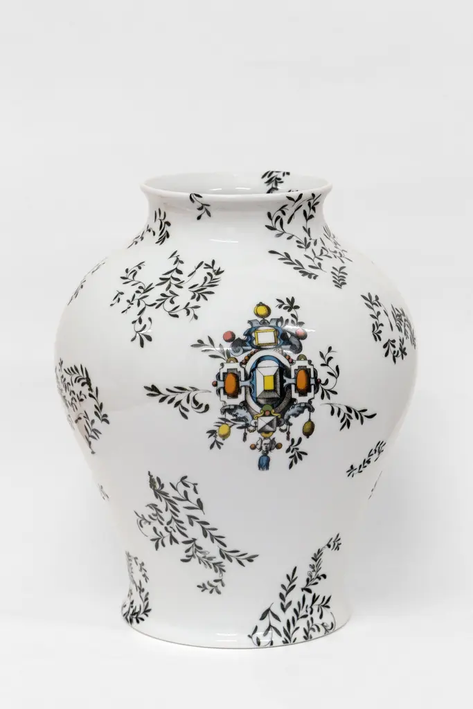 Pompei, Contemporary Porcelain Vase With Decorative Design By Vito Nesta