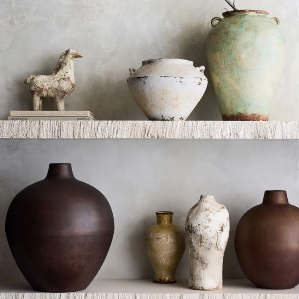 Our Pompeii vase collection fascinates with reactive glazes and artisanal textures that evoke perfectly preserved ancient artifacts. Ocher yellow glaze coats this rustic ceramic vase, accented on its lip and base with deep brown glaze that highlights its classical silhouette. The mottled texture applied by hand enhances the organic warmth of the vase. Display on its own, filled with botanicals or grouped with our other Pompeii pottery on a bookshelf, buffet or mantel. Due to the reactive glazes and handcrafted techniques, each vase is one of a kind.