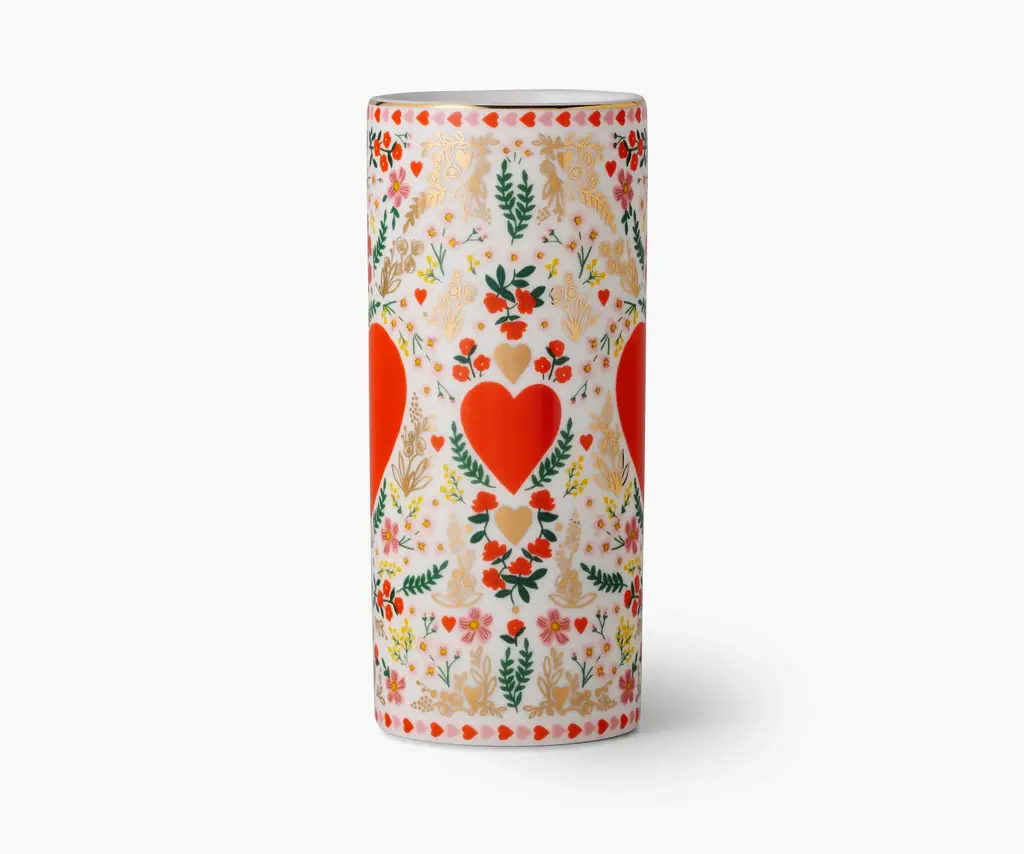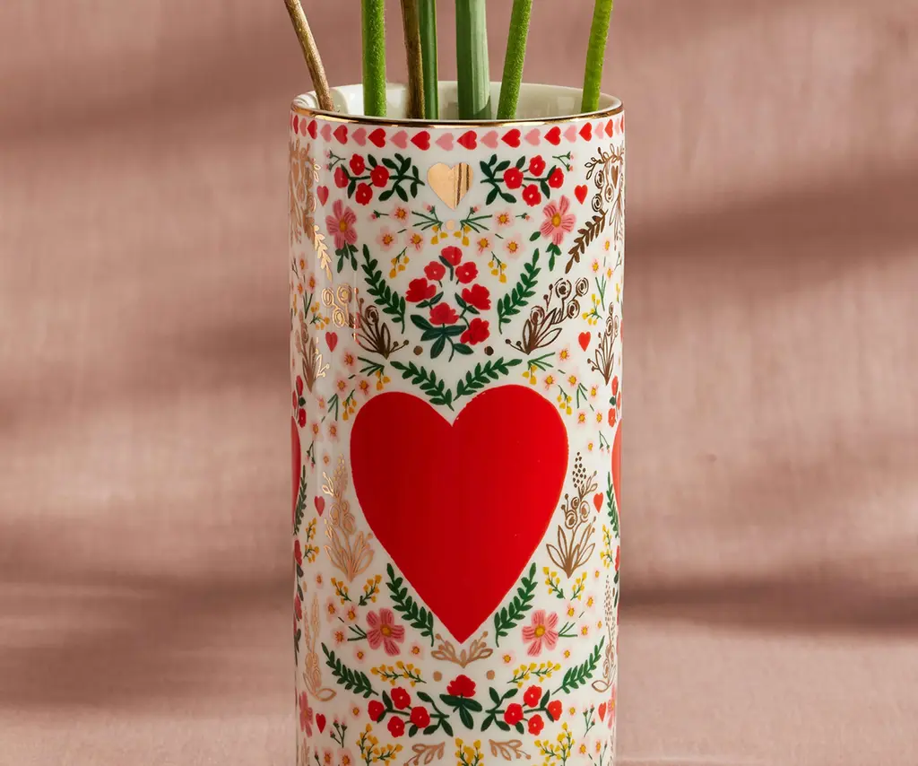 A pretty vase for your Valentine's Day bouquet. This porcelain cylinder vase features our illustrated Juliet design and a gilded rim for extra shine.