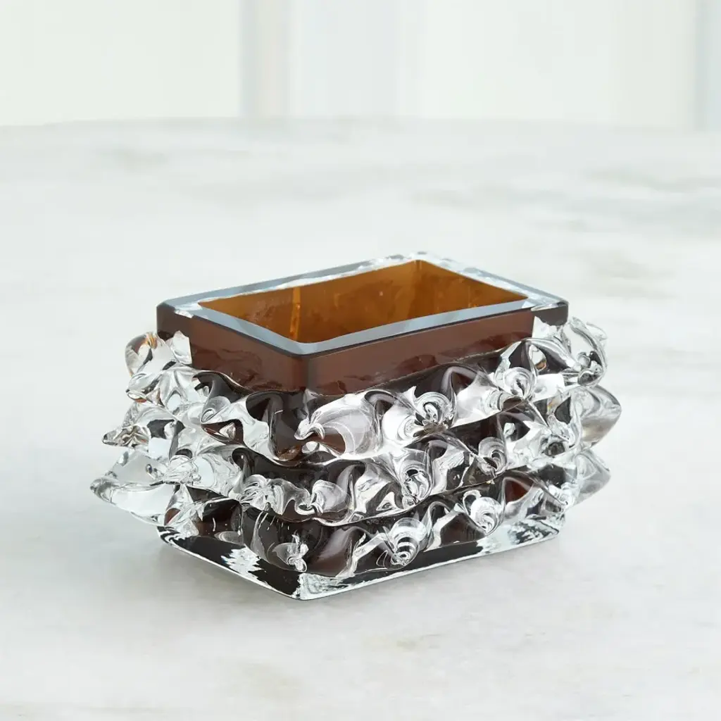 The Porcupine Vases are beautifully handcrafted by skilled Polish artisans. The enchanting, encased color effect is achieved through a meticulous hand-blowing technique, in which layers of clear and amber-colored glass are expertly fused together. Following this, artisans skillfully apply clear glass to the exterior, and with the use of a special tool, they delicately create the distinctive pinched design that adorns these exceptional vases. Each piece is unique and one-of-a-kind. From a fashion forward perspective, Global Views offers accessories, furniture, statement lighting, and an assortment of rugs and mirrors to add beauty and joy to your home.