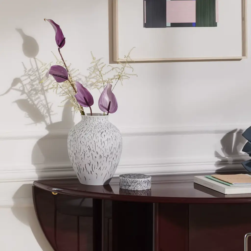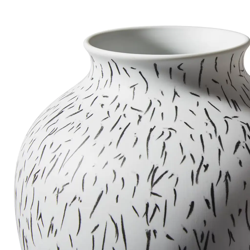 Black brushstrokes against a bright porcelain silhouette reveal the contemporary spirit of this exquisite porcelain vase. Designed by Formafantasma for the Post Scriptum Collection of pieces reinventing archetypal forms found in the Manifattura Ginori's archive, it flaunts harmonious curves tracing a generous body sealed by a welcoming mouth.