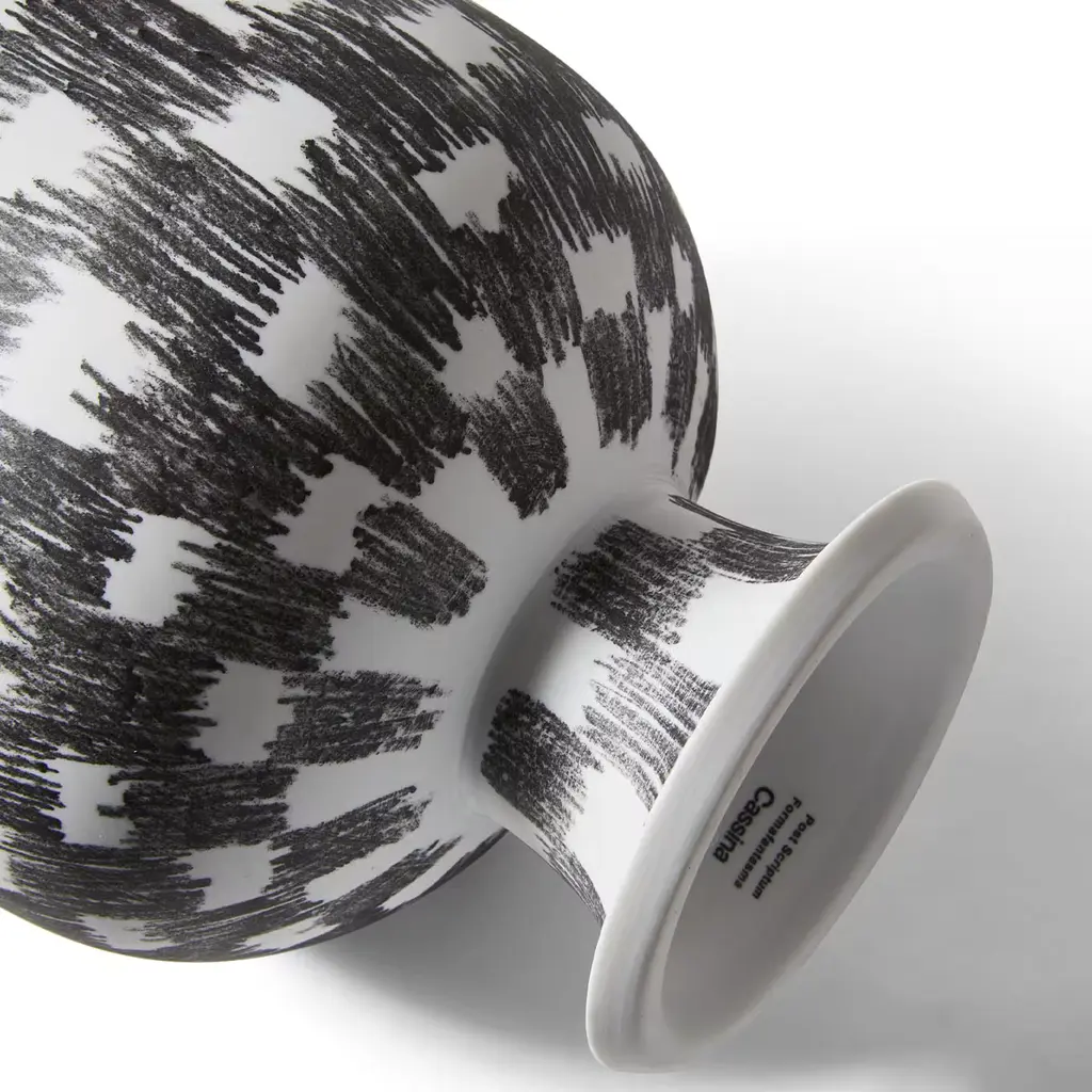 Part of the Post Scriptum Collection, this porcelain vase is an example of the reinterpretation of designs from the Manifattura Ginori's archive in a contemporary key. The simplicity of its shape meets the personality of a captivating, almost scribbled check motif, deftly painted by hand in black by master artisans. A version with a criss-cross pattern is also available in the Artemest catalog.