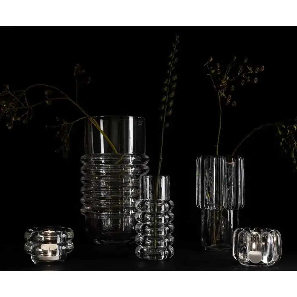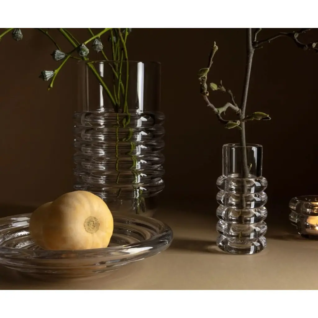 Tom Dixon's Press Stem vase charms both filled with beautiful floral arrangements and empty. The sculptural vase is made by melting glass, which is then pressed into two- or three-piece iron molds. The result is the unique silhouette of the Press products: both soft and strong at the same time. Thanks to the manufacturing process, small variations can occur, making each object uniquely fascinating. The Press Stem Vase is delivered in a gift box.