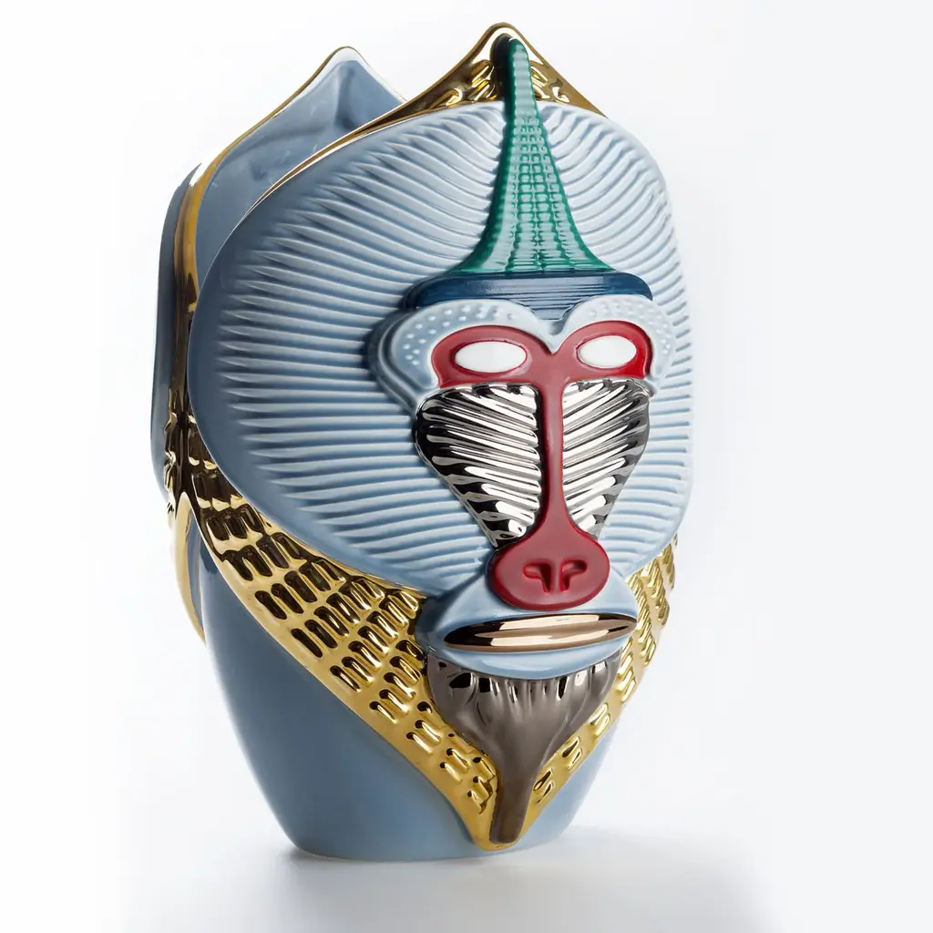 The Primates Mandrillus Vase is an exquisite piece from the Primates Collection, meticulously designed to celebrate the profound connection between humanity and the animal kingdom. This striking vase captures the expressive features and distinctive form of a mandrill, evoking both strength and vitality. Crafted from fine ceramic, it showcases intricate details and vibrant textures, brought to life through a glossy finish enriched with rich red and precious metal accents. The result is a captivating interplay of colors and reflections, making it a true statement piece in any interior. Perfect for floral arrangements or as a standalone decorative object.