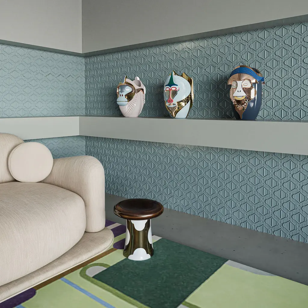 Primates Mandrillus Glossy Light Blue Ceramic With Metal Details Vase By Elena Salmistraro