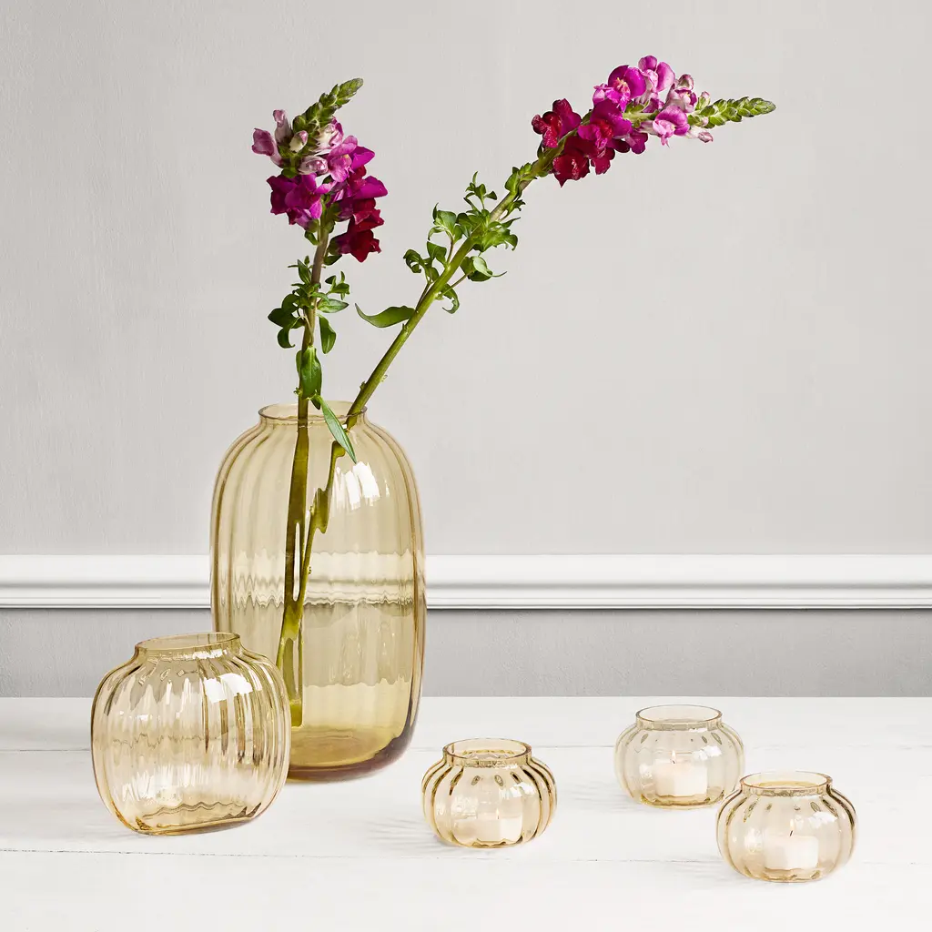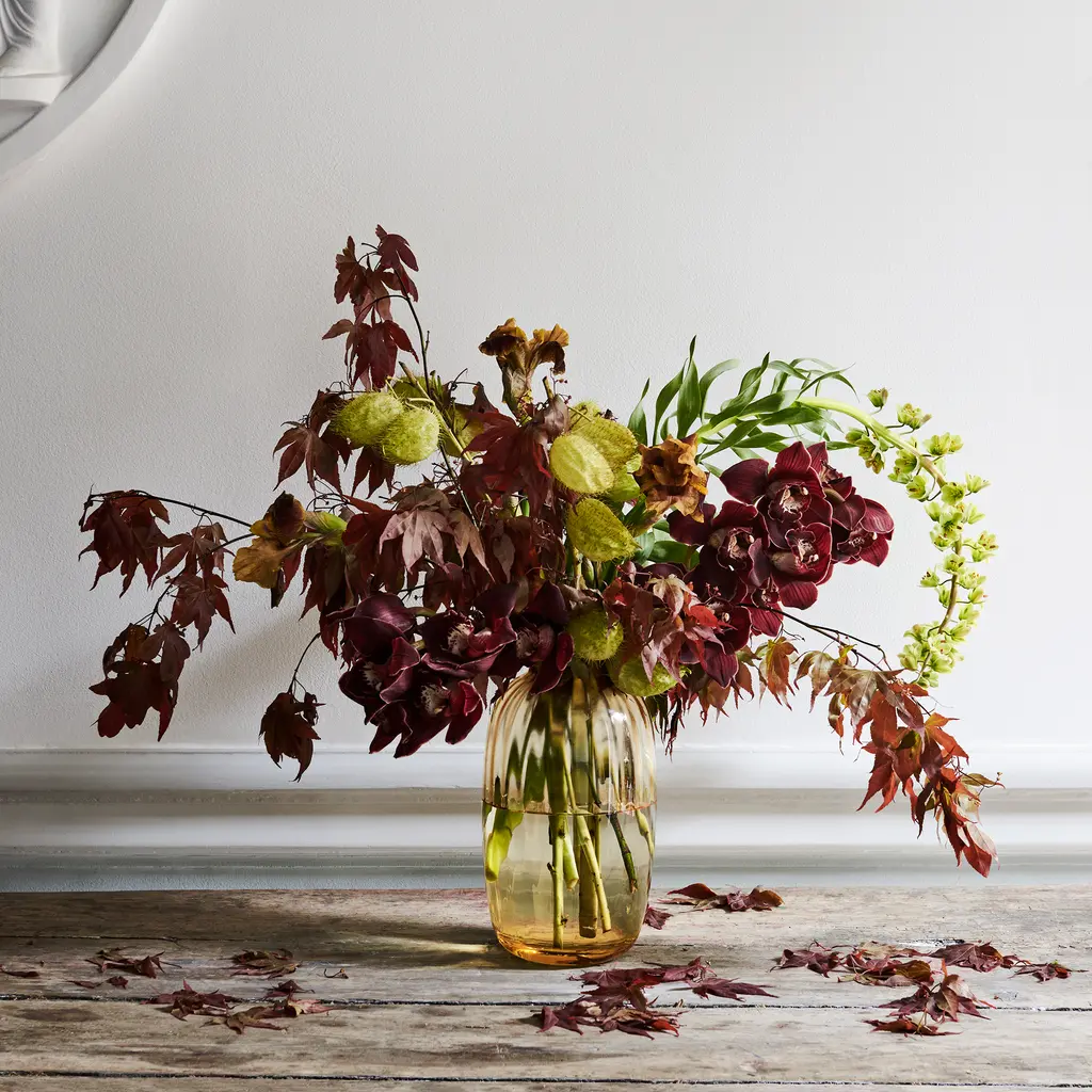 A charming fluted pattern and the quality of mouth-blown glass make the Holmegaard Primula Vase, 10″ a perfect choice to design gorgeous flower arrangements for your home. The largest vase from the Primula series designed by Jacob Bang, this glass vase suits a variety of flowers, from single stems to large bouquets. The design is ideal to create a centerpiece on a dining table, but you can also use it to display flowers on a side table in a living room or a shelf in an entrance area. Made from mouth-blown glass, the Holmegaard Primula Vase, 10″ comes in Clear and Amber versions, each enhancing the fluted lines in subtly different ways. Explore the other vases from the same collection to coordinate your home décor in style.
