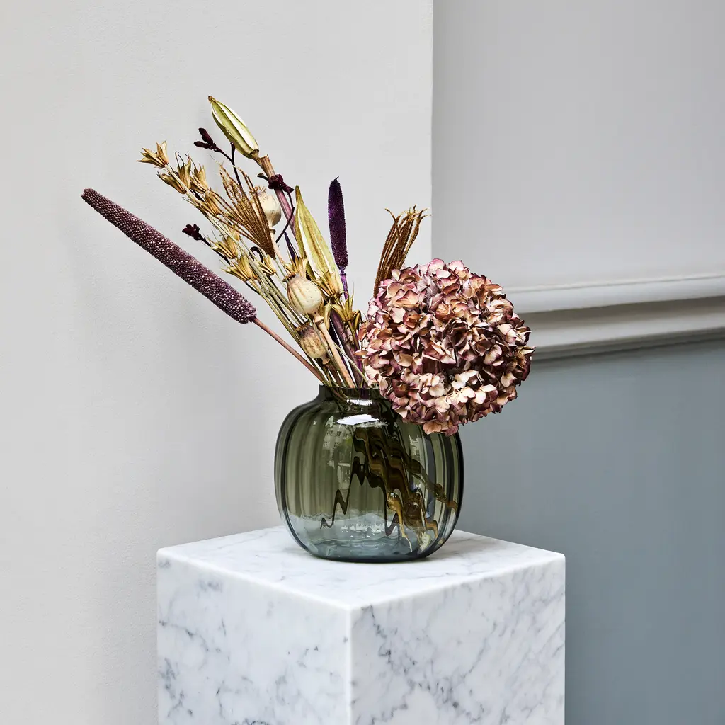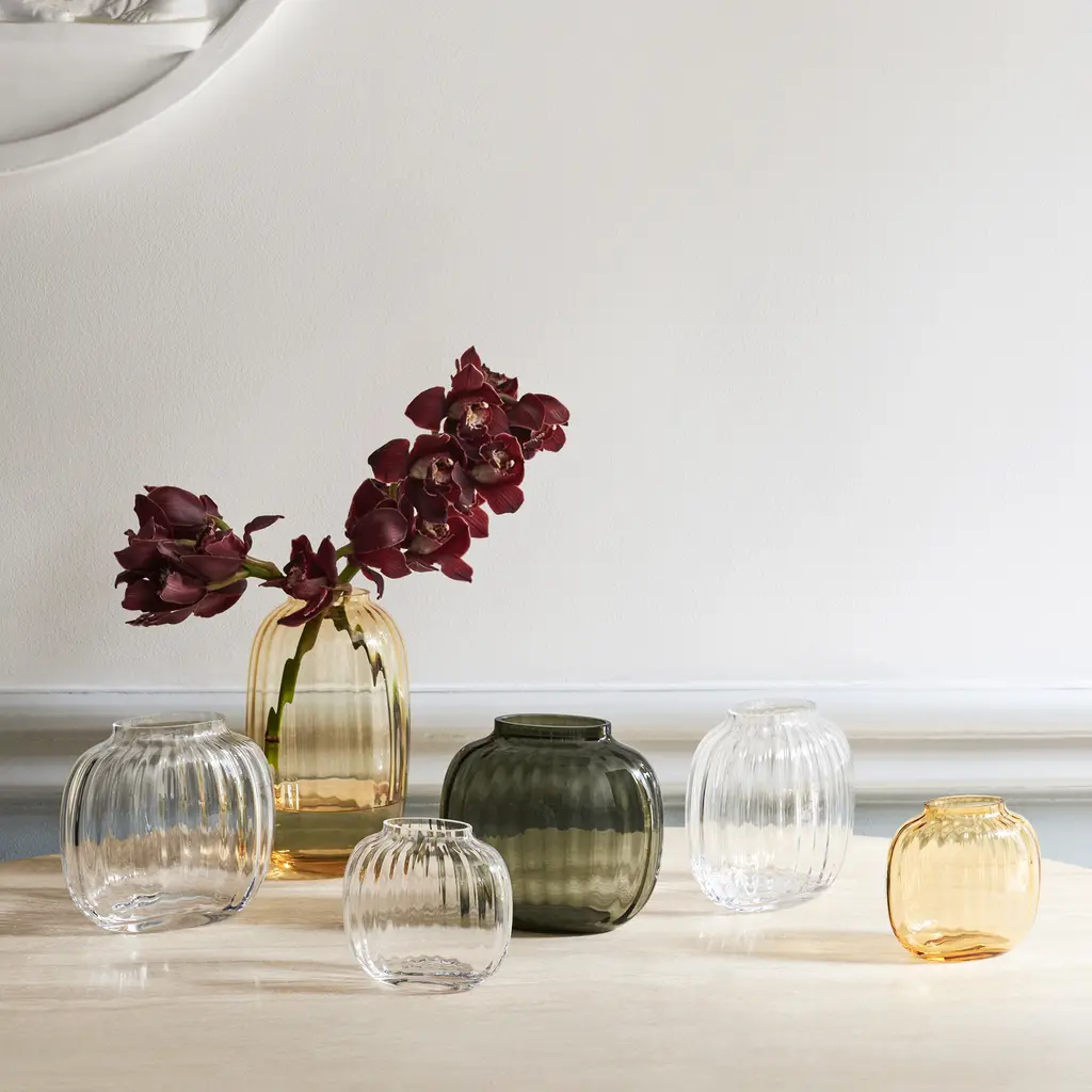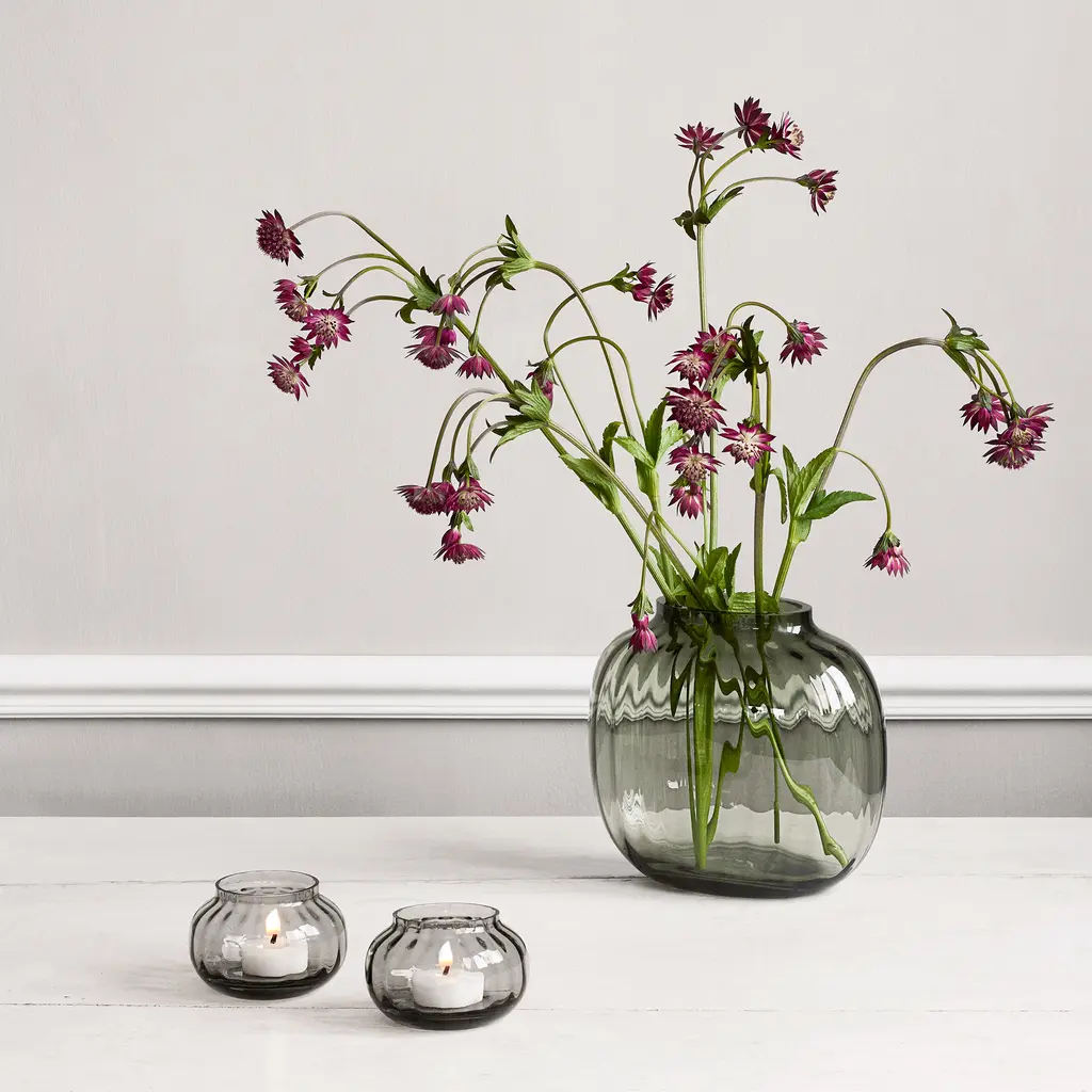 Lovely either on its own or placed alongside other vases from the same collection, the Holmegaard Primula Oval Vase, 6.9″ makes flowers look their best. The oval shape highlights the delicate fluted pattern, creating a play between shadow and light. Standing at the middle point between the series’ small and larger vases, this design is perfect for individual flowers, bouquets, or decorative plants. Use it to bring the beauty of nature to a dining table setting or to beautify your living room décor – either way, this Primula vase will look gorgeous. Available in Clear and Smoke versions, this glass vase is crafted by hand with traditional techniques. Place it at the center of a table or shelf, or arrange it in a stylish composition with other Primula vases.