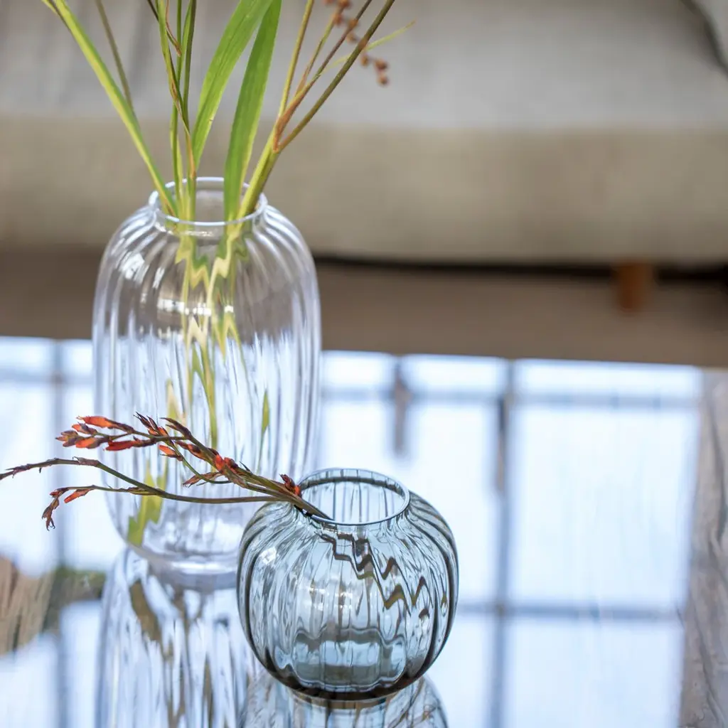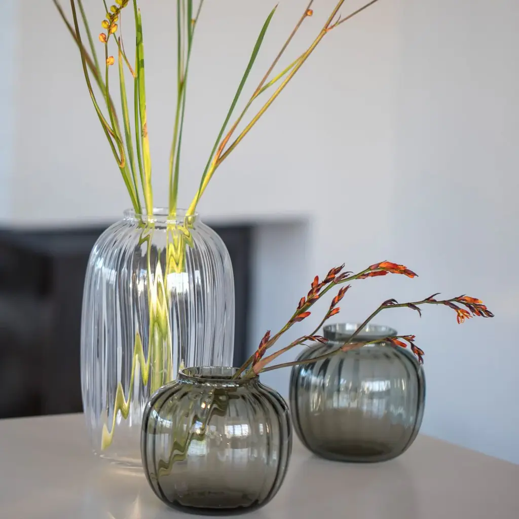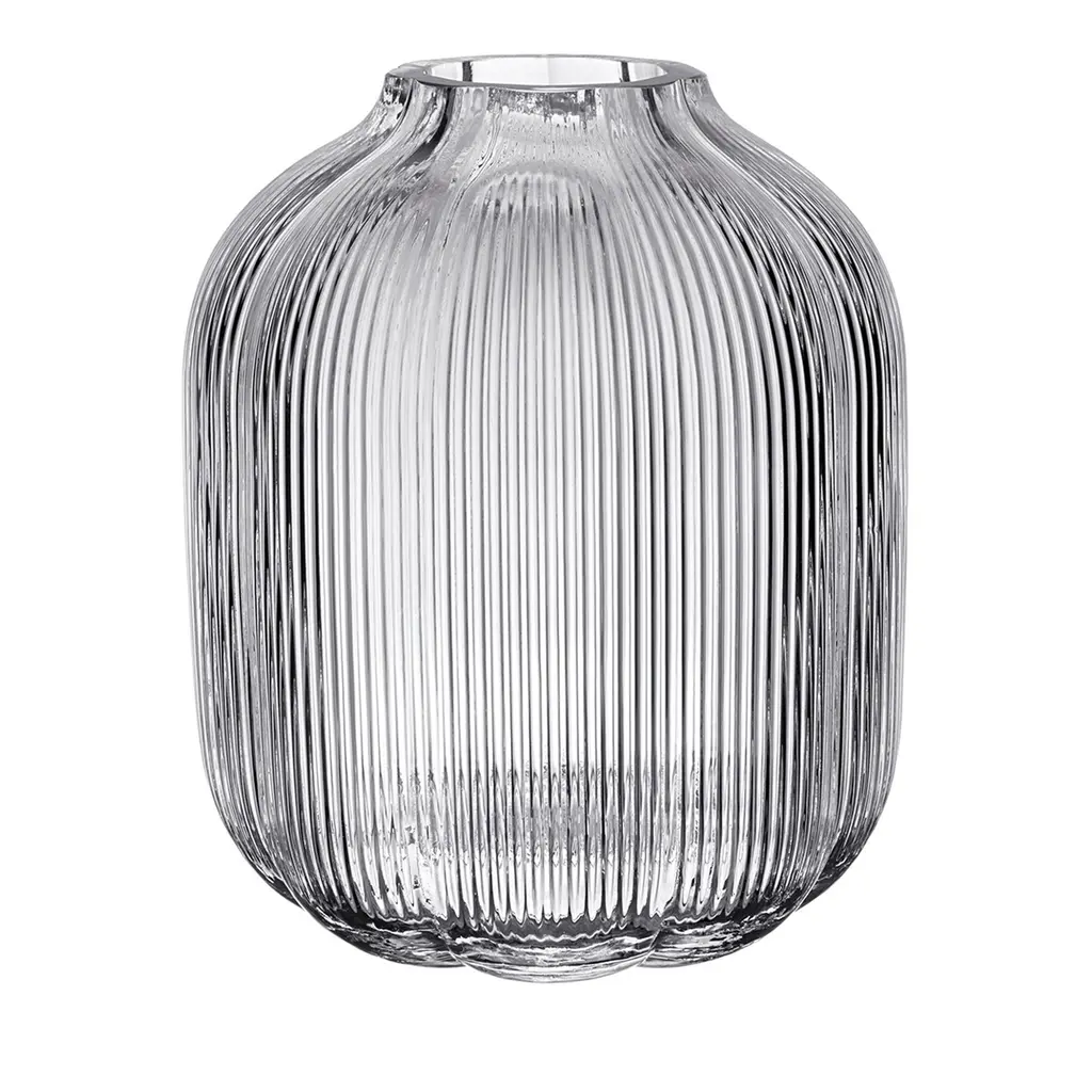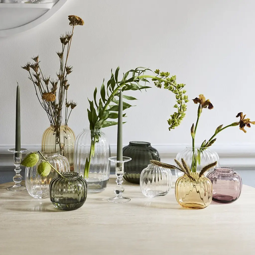 The beautiful Primula vase, made with hand-blown glass from Holmegaard was designed by Jacob E. Bang. The vase stands 25.5 cm tall and is designed with an attractive, optical pattern that creates unique interplay in the glass. The Primula vase is great for displaying either a single flower or a combination of flowers, which will look magnificent in the vase, where the colors really come into their own.