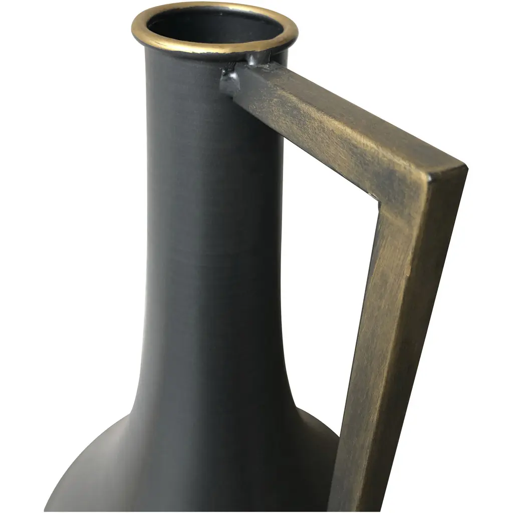 The Argus Metal Vase is a nod to minimal design. Distinguished by its slender, narrow profile and smooth black finish, this tall holder comes with an angular handle for ergonomic and a unique touch. Its narrow mouth is ideal for long botanical sprigs.