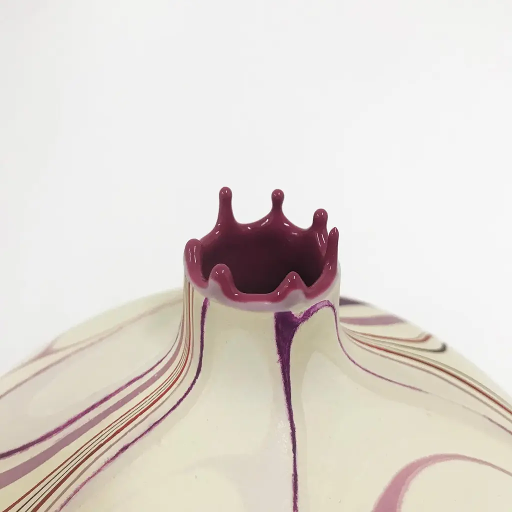 Prometheus round hydro vase by Elyse GrahamDimensions: W 20 x D 20 x H 23 cmMaterials: Plaster, ResinMOLDED, DYED, AND FINISHED BY HAND IN LA. CUSTOMIZATIONAVAILABLE.ALL PIECES ARE MADE TO ORDEROur new Hydro Vases take on a futuristic appearance as the signature saturated veining runs across a new muted background. With this new palette we began to imagine the possibility of otherworldly landscapes and waterways as seen from above. Inspired by the bold colors of our Hydro Collection and the muted tones of our Landscape Collection we have named all of our new Hydro Vases after the many moons of Saturn. Each vessel is hand-cast with hydrocal plaster inside of a unique balloon shape. The interior of each piece is poured with layers of resin, making it waterproof. We have developed a unique process for pigmenting the exterior of the vases that is based on the technique used for marbling paper. Each vessel is sealed with a UV resistant acrylic coating.Much like the satellites that inspire them, the pattern on each piece is unique.MEET OUR TEAMElyse Graham is the founder and creative director of the studio. Driven by Elyse’s unique vision of building a studio that fosters and emphasizes connection, play, and experimentation (of people, processes, and in turn the objects created and shared) our small team works closely and collaboratively on each project. Elyse received a BA in sculpture and semiotics at Brown University. After years of making sculpture and running a business in jewelry design, Elyse decided to merge her separate practices and redirect her attention toward collectible design in 2013. The creative trajectory of the studio is heavily influenced by Graham’s background in fine art, specifically her interest in process-driven and material-based artwork. The studio’s vocabulary of shapes, patterns, and forms comes from a lineage of unconventional processes Graham has developed and built for working with plaster and resin. Graham shares her studio as well as her home with her husband, Lewis Mauk and their daughter, Eero. Miller Robinson is head of our production department. From pigmenting and casting materials for all of our products in plaster and resin to graphic and production design, they wear many hats in our studio. Miller joined our team in 2014 and has been an integral part of designing many of our experimental processes that have lead to the creation of our unique MetaMATERIAL. Like Elyse, Miller has a background in material and process-oriented making, which led to an instant connection and collaborative understanding between the two. Miller received their BFA from Otis College of Art and Design with a focus on painting, installation, performance, and writing. Their individual art practice focuses on the preservation and potentialities of underrepresented histories and encompasses objects, garments, actions, tattooing, and books. Their personal work has been exhibited in Los Angeles at the Southwest Museum, Los Angeles Municipal Art Gallery, Heritage Square Museum, and with Los Angeles Contemporary Exhibitions (LACE), as well as HORESEANDPONY Fine Arts in Berlin.Lewis Mauk is our studio and operations engineer. Working on facilities and production design as well as engineering and leading all of our large-scale constructions and installations, Lewis’ unique set of technical skills gives form and structure to our studio’s unconventional ideas and processes. Lewis has been working behind-the-scenes since the creation of the studio but joined our team full-time in 2020. Consistent with the rest of our team, Lewis has a background in process-driven fine art and has extensive training in woodworking, printmaking, and photography. He received a MFA from CalArts and has worked across the fields of education and fabrication. Lewis’ combined interest in the creation of personal archives mixed with his commitment to sustainable life practices, has brought a focus and important emphasis on designing studio projects and processes that imagine ways to reduce and reuse studio material fragments.