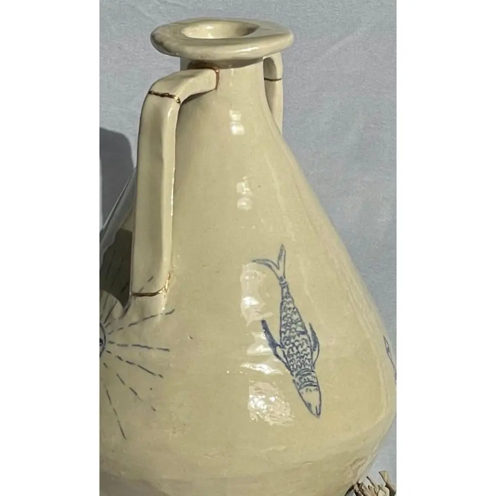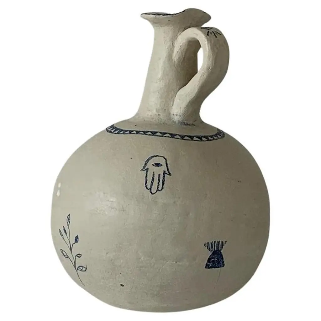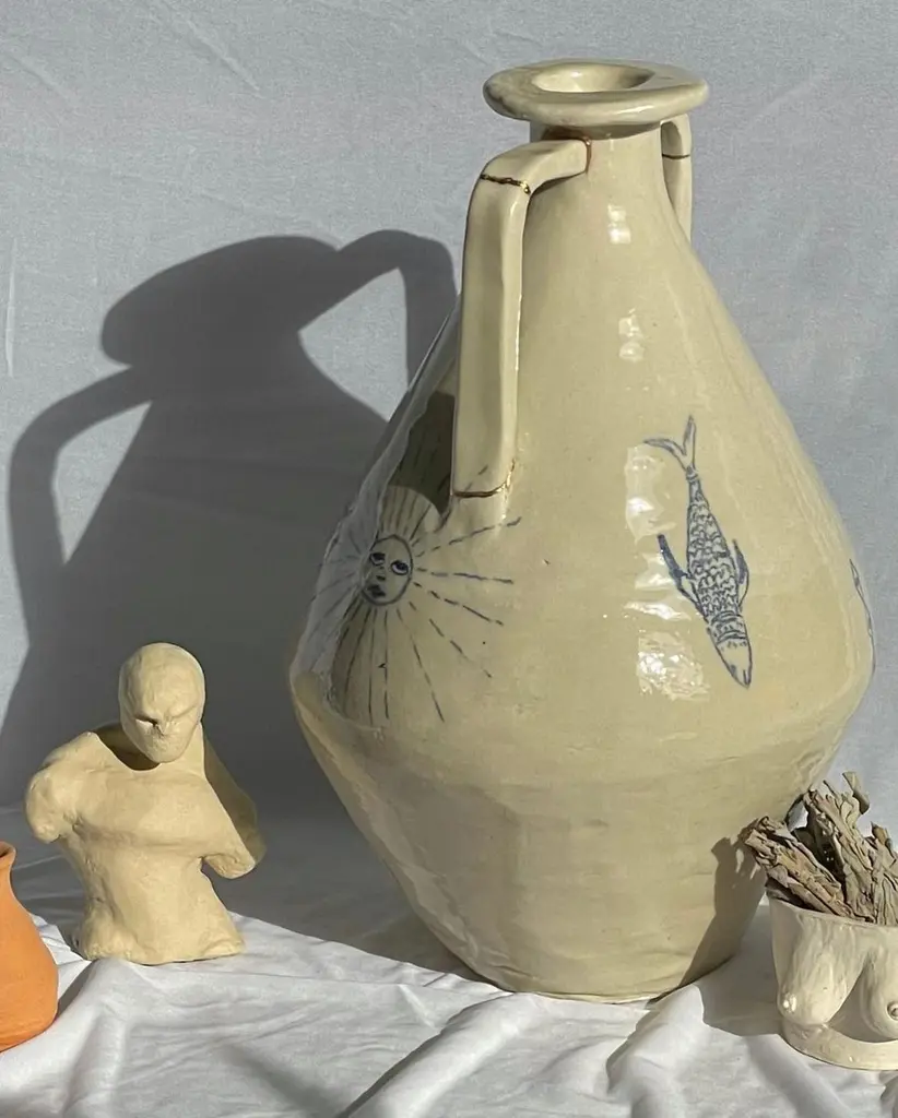 Protector Vase 2 by Solem CeramicsDimensions: Ø 20.5 x H 35.5 cm.Materials: White stoneware, blue underglaze, clear glaze.This vase is water safe. Please contact us.Solem’s work pulls from memories of the architecture and community within SWANA and Southeast Asia thorough exploring familiar shapes, colours and textures from these regions in which she found comfort. We have the ability to revisit timelines– to reutrn to a place that may feel lost, or one that has never existed– through finding peace in yearning. To find the peace in yearning is to bridge the metaphysical gap between the physical self and the essence of Home, and therefore, exist in multiple places at once.Clay is a multidimensional mirror. It is affectionate, communicative, intuitive and confrontational.