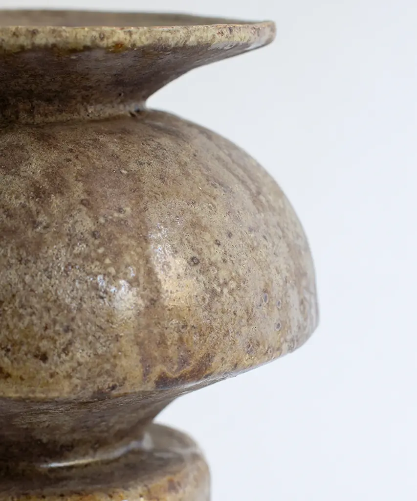 Founded by Raquel Vidal & Pedro Paz, Canoa Lab is a contemporary ceramics studio rooted in the classics. Inspired largely by archaeology and ancient Mediterranean vessels, the studio experiments with unique casting, coiling, and glazing techniques to offer a contemporary reinterpretation of timeless forms. Each piece is delicately handcrafted by the designers in their studio based in Valencia, Spain. The stoneware vase in handmade to order by the Valencia-based studio, Canoa Lab.