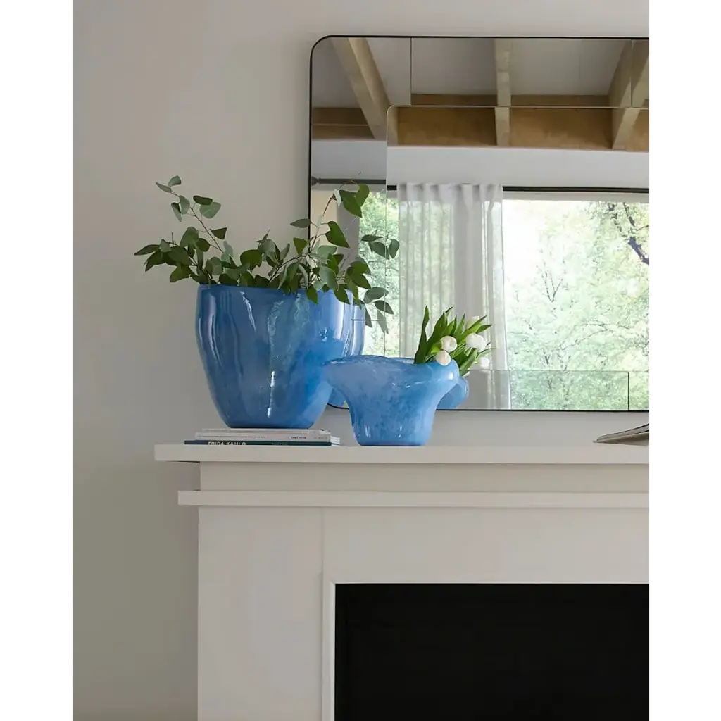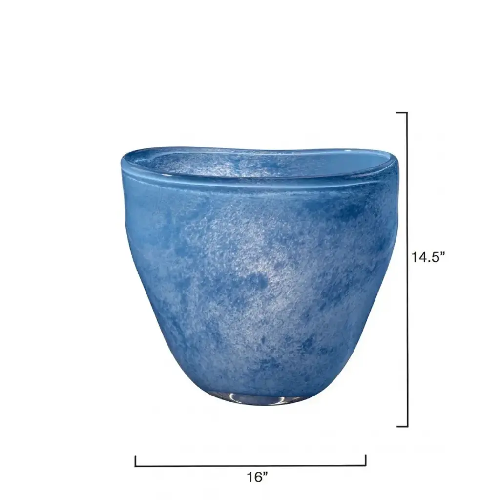 Handblown from glass as blue and inviting as cool waters on a warm day, the artisan quality of this vessel is immediately apparent. Its softly curved lines and subtle shading gradients showcase the talent of our craftsmen, while its wide mouth makes it easy to fill.