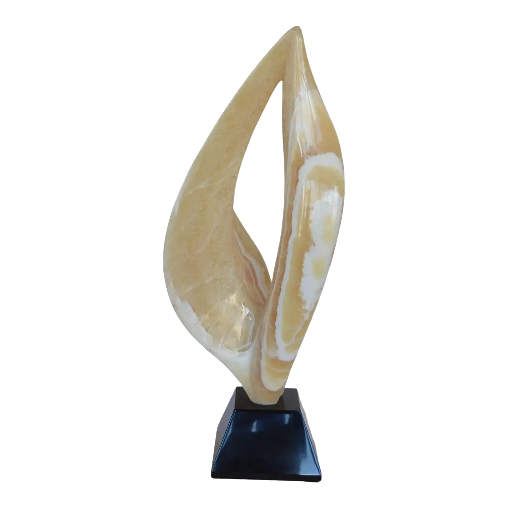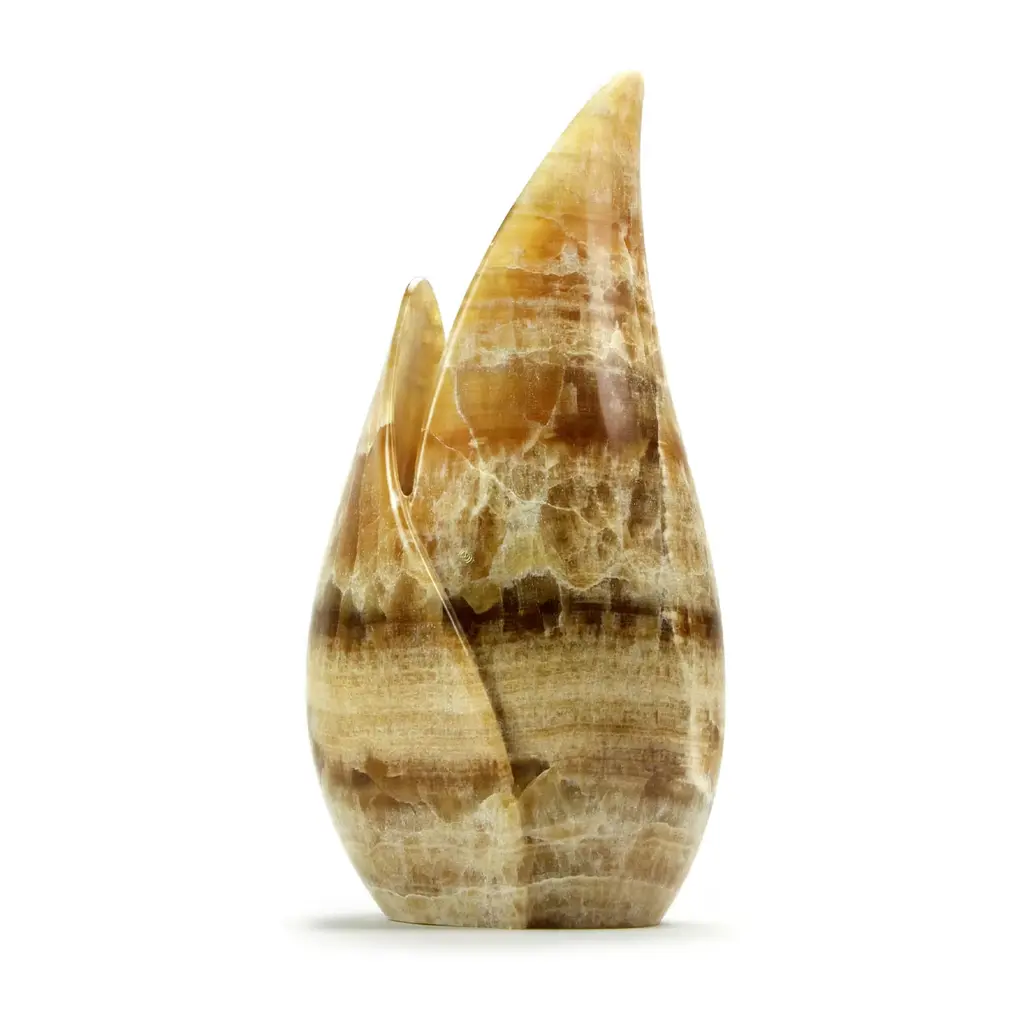 Important sculptural vase carved by hand from a solid block of Amber onyx. Limited edition of 35. Each vase is hand-signed and numbered by the artists (engraved). 100% handmade in Italy, comes with a “Certificate of Authenticity”. Onyx is a natural material, every piece is unique as each onyx block is different in veins and color shades. All of our creations are handmade by Italian artisans and can slightly vary in shape and size.