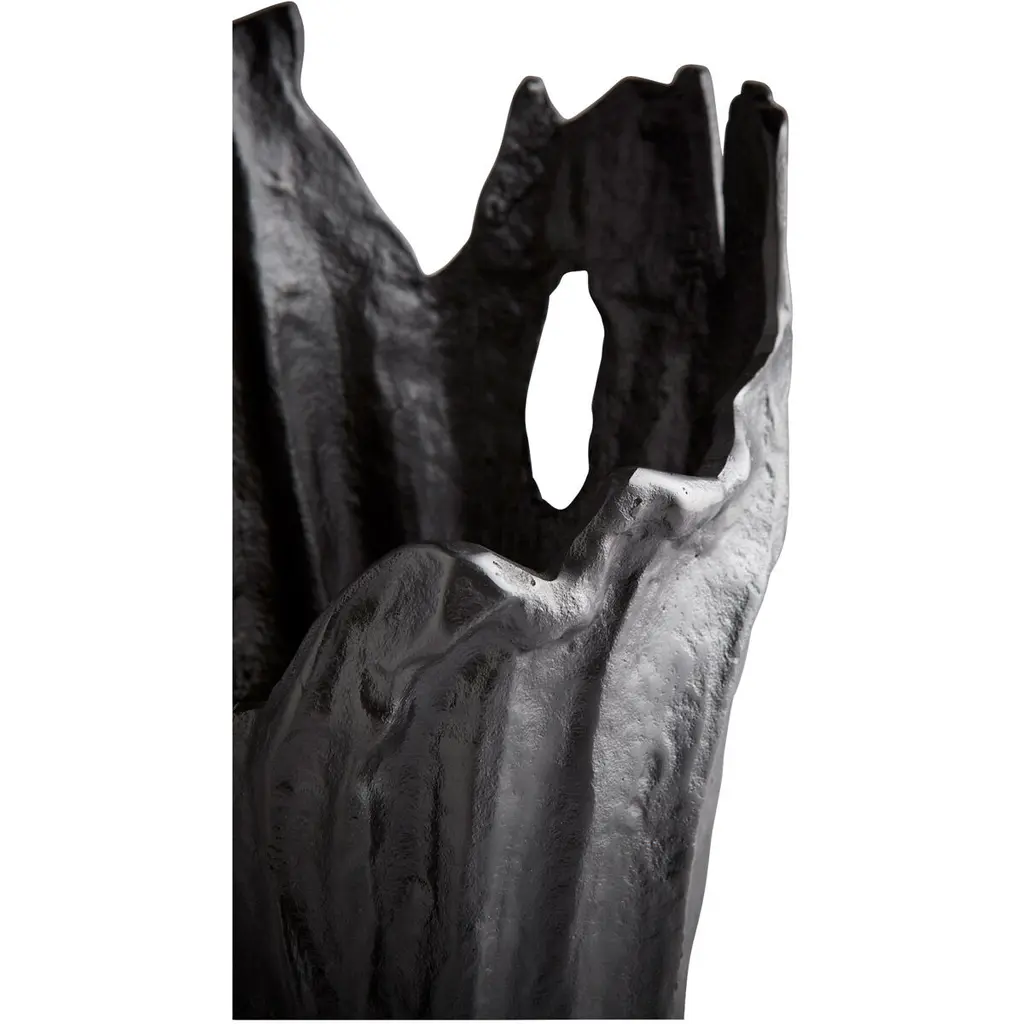 The Pyroclastic vase possesses an explosive- deconstructive design that is enhanced by its glossy dark monochromatic palette. This vase will certainly make any informal or formal interior space pop with or without plants.