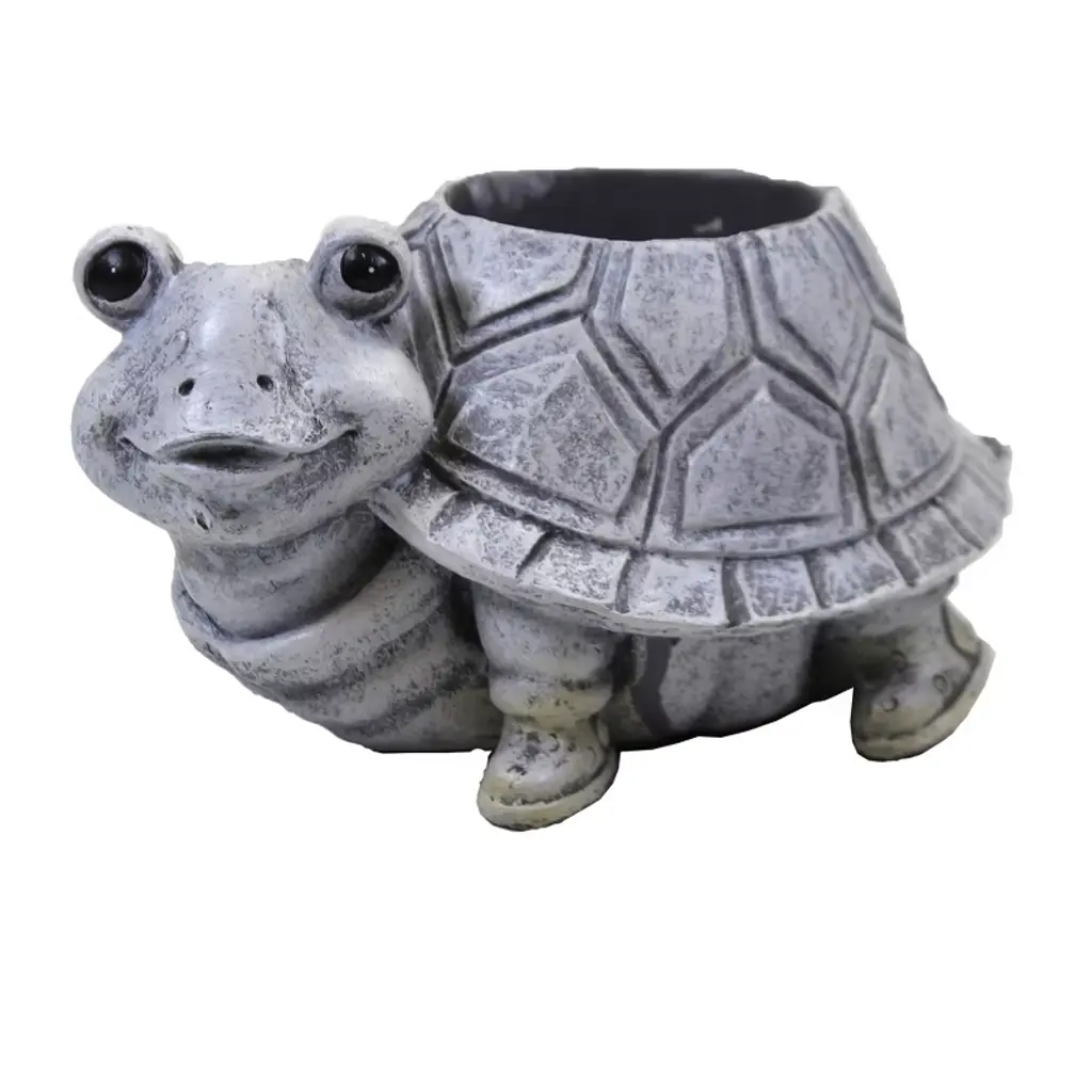 TURTLE CARRY PLANTER AND CHAMPAGNE COOLER - This turtle carries a holder on its carapace that can be a champagne cooler or housing for plants and flowers.Color: TerracottaMaterial: Turtle and vase in polyethylene