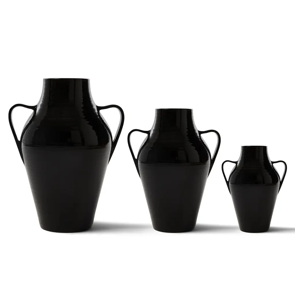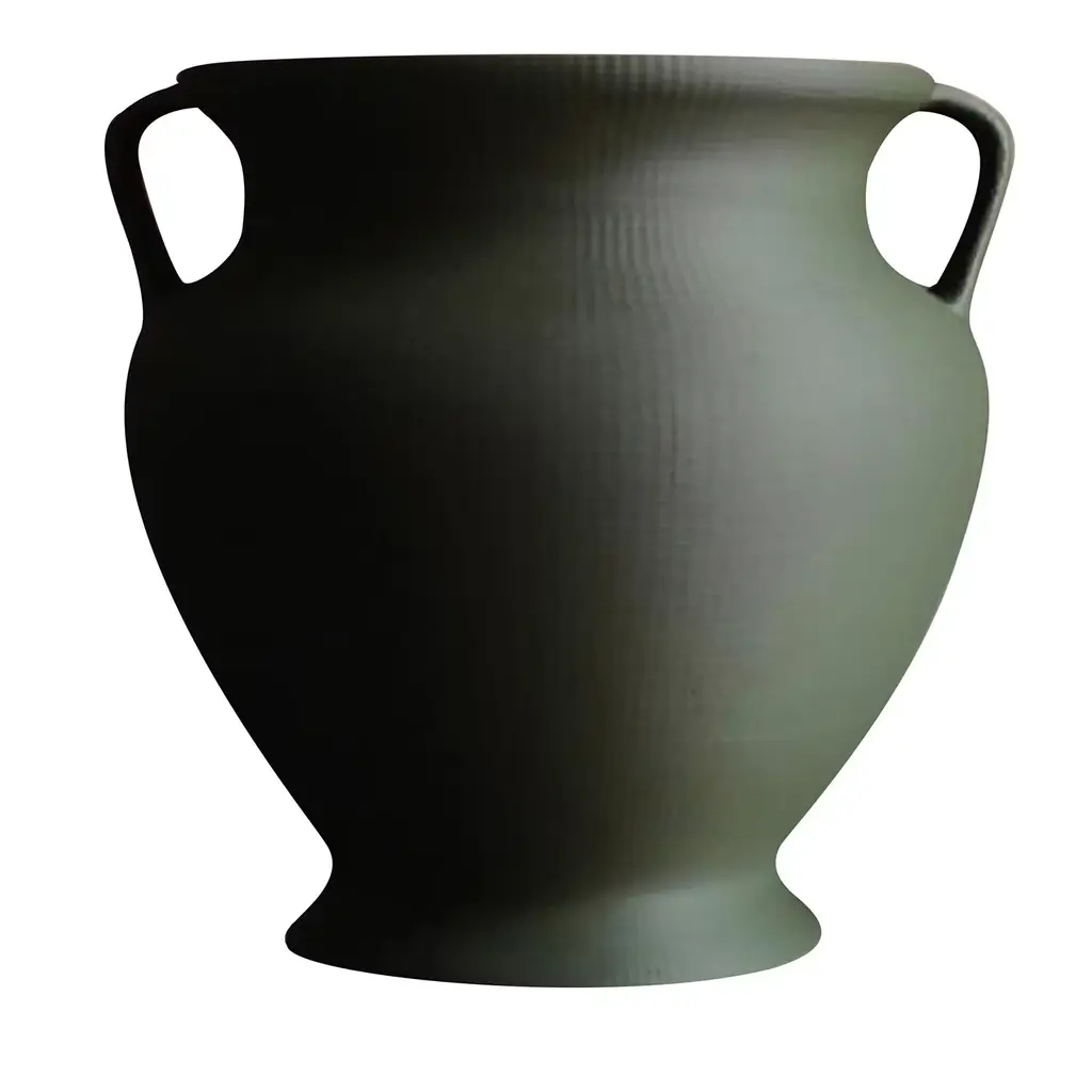 Fissures right below its sinuous handles are a discreet yet provocative trait marking this ceramic vase, design developed having in mind the flawed imagery of time-based erotic encounters in small towns. Featuring a subtly wavy texture of pleasant tactile flair, the vase flaunts generous curves reminiscent of a sensual thin-waisted woman. Also available in 60 cm and 90 cm versions. Contact the Concierge for more details.