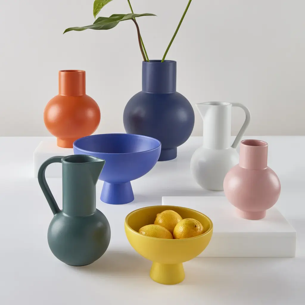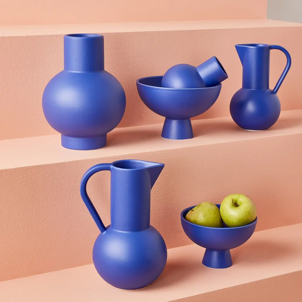 Drawing inspiration from still lifes by Danish modernist artist Vilhelm Lundstrøm this sculptural ceramic jug—handmade in Portugal using a slip-cast technique—marries refined simplicity with everyday function, picking up on the color palette and minimal yet mindful proportions of the simplified bowl, vessels and vases