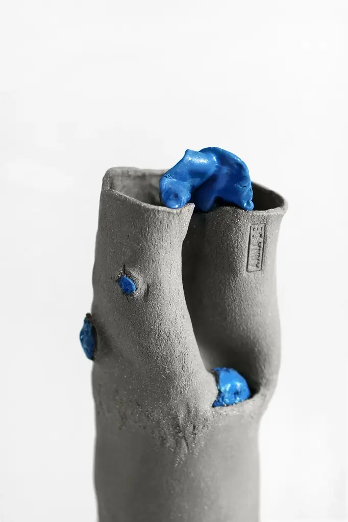 Carefully hand-decorated sculptural vessel. Every piece can be slightly different as it's a hand made. Materials: stoneware, porcelain, glaze Signed by Maker,Stamped by Maker