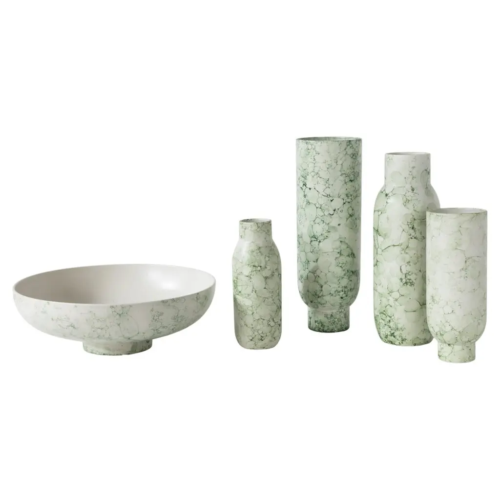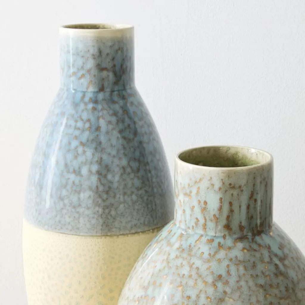 Ceramic in a Light Green finish. For decorative use only. Some variations in color due to reactive glazing process. Not watertight. Sold individually or as a set of 2. Made in Portugal.