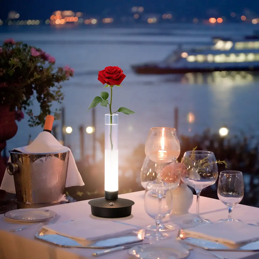 Rechargeable Cordless Dining Table Lamp Vase Lamp - Black