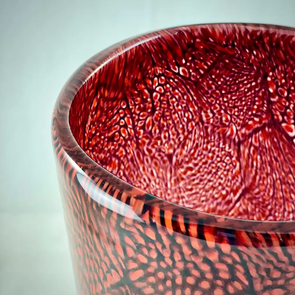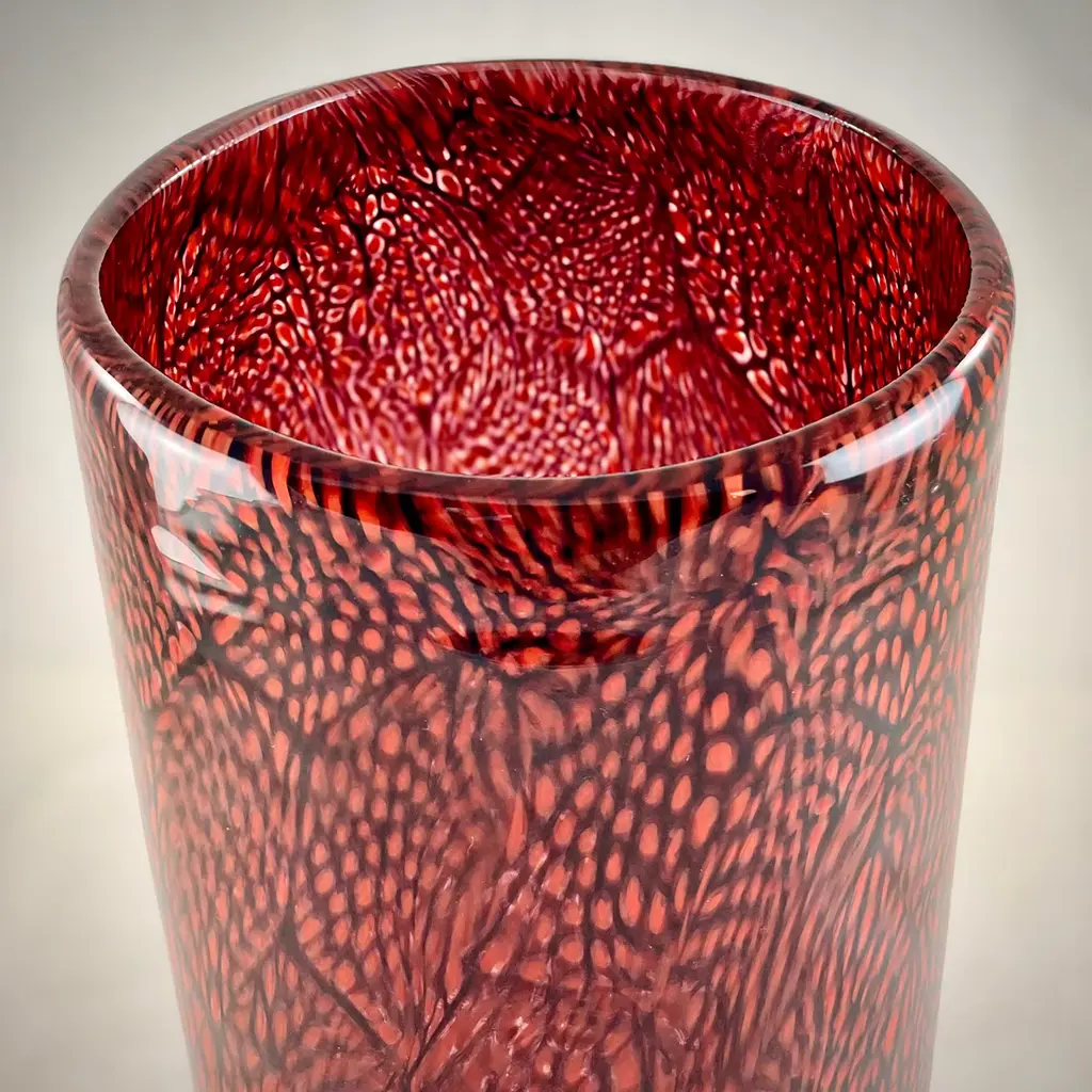Red & White Filigree Murrine Vase