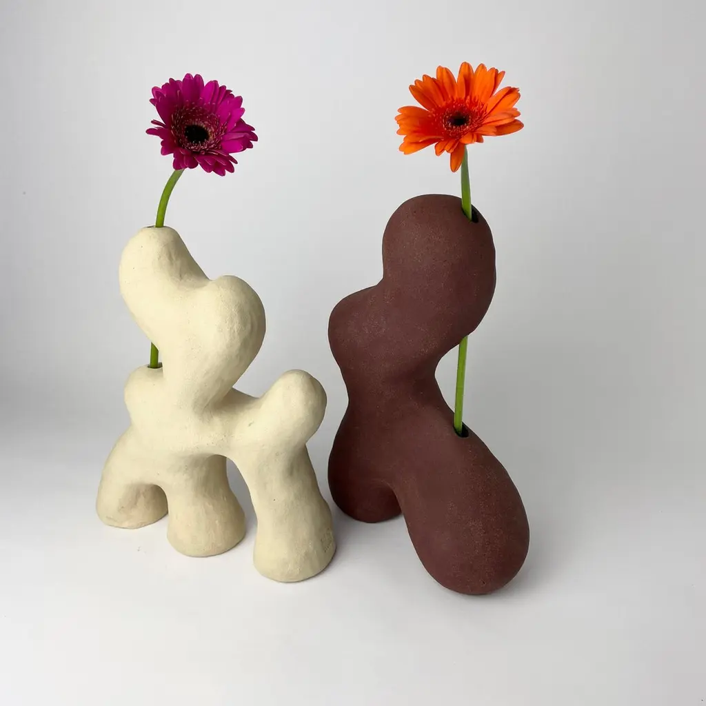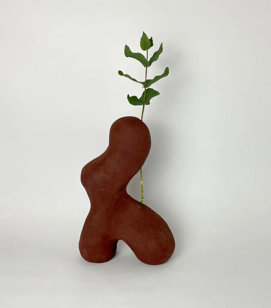 Red sculptural Vase by HS StudioSurreal Real Collection Dimensions: 25 x 18 x 9cmMaterials: CeramicHannah Simpson is a ceramic artist, based in Kent, UK. With a passion for creating unique items, Hannah's work continues to challenge the line between art and design.Hannah graduated from Loughborough University in 2019 with a 1st Class Honours in Fine Art. During her time at university, Hannah opted to take part in an industrial placement year where she interned in Eindhoven, Netherlands for designer Nacho Carbonell. Whilst on this internship Hannah developed a passion for functional art work and began combining ideas from her knowledge of art and philosophy with design to create biomorphic sculptures that often resemble mystical creatures.For the past year Hannah has continued to develop her work to combine functional design with fine art. Hannah’s work is inspired by religion, myth and instinctive thoughts, with particular focus on the relationship between order and chaos. She creates sculptures that change how a space is used, allowing the viewer to remove themselves from reality and instead be surrounded by surreal objects that can evoke imagination and emotion.
