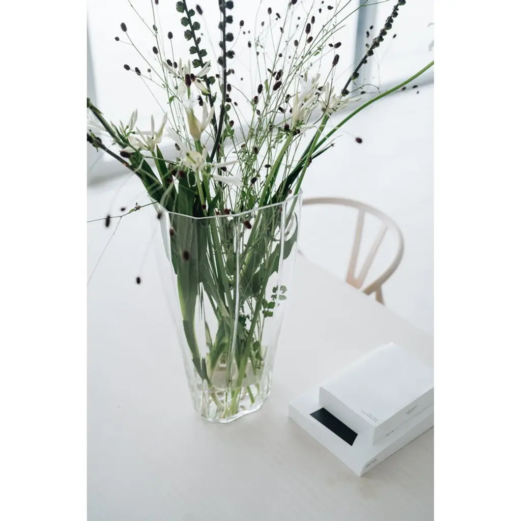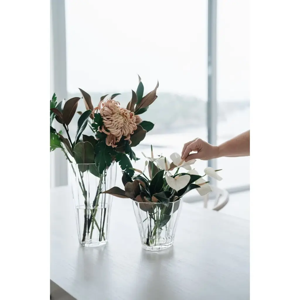 Orrefors' Reed vase features a timeless and sophisticated design that will delight many spaces and different occasions. The mouth-blown glass vase is as charming when filled with lavish bouquets of flowers as it is when paired with individual branches. Designed by Monica Förster, the Reed vase was originally created as three-dimensional sketches on cardboard and paper, as the designer pursued a way to accentuate the vase's folded forms rather than concealing them.