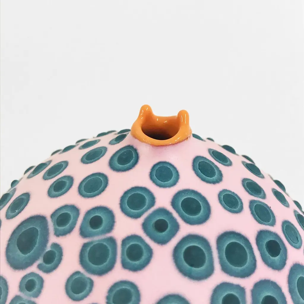 Reef Petri vase by Elyse GrahamDimensions: W 13 x H 14 cmMaterials: Plaster, ResinMOLDED, DYED, AND FINISHED BY HAND IN LA. CUSTOMIZATIONAVAILABLE.ALL PIECES ARE MADE TO ORDEROur Microbe Collection is inspired by the unique galaxy of microorganisms living within each of us. We created a technique for dying and stippling each vase that evokes the nature of microbes as they grow and colonize . Each vase is hand-cast with hydrocal plaster inside of a unique balloon shape. The interior of each piece is poured with layers of resin, making it waterproof. Finally, each vase is hand-dyed with custom mixed pigments and finished with a unique pattern of dyed plaster protuberances. The exterior of each vase is sealed with a UV resistant acrylic coating. These vases are all handmade and will vary slightly in shape, size, color and pattern.Founded in 2014 and based in Los Angeles, the Elyse Graham Studio is a place where unusual materials and experimental processes are implemented to create a melding of art and object. We design by making—with an emphasis on capturing the unique properties of the materials we use through exploration and innovation. Each piece we make is non-repeating and completely individual. We have intentionally designed every process we use — from how we mix our colors to how we cast our forms to highlight and celebrate the time-based, made by hand quality of our work. All of our pieces require a specific kind of care and attention at every level of production. At the core of our studio is our endless fascination with inviting the unknown into our work and exploring our passion for creating pieces that tell a story— about the materials they are made of, the artists who make them and the homes they live in. Each piece is a journey, come along with us.MEET OUR TEAMElyse Graham is the founder and creative director of the studio. Driven by Elyse’s unique vision of building a studio that fosters and emphasizes connection, play, and experimentation (of people, processes, and in turn the objects created and shared) our small team works closely and collaboratively on each project. Elyse received a BA in sculpture and semiotics at Brown University. After years of making sculpture and running a business in jewelry design, Elyse decided to merge her separate practices and redirect her attention toward collectible design in 2013. The creative trajectory of the studio is heavily influenced by Graham’s background in fine art, specifically her interest in process-driven and material-based artwork. The studio’s vocabulary of shapes, patterns, and forms comes from a lineage of unconventional processes Graham has developed and built for working with plaster and resin. Graham shares her studio as well as her home with her husband, Lewis Mauk and their daughter, Eero. Miller Robinson is head of our production department. From pigmenting and casting materials for all of our products in plaster and resin to graphic and production design, they wear many hats in our studio. Miller joined our team in 2014 and has been an integral part of designing many of our experimental processes that have lead to the creation of our unique MetaMATERIAL. Like Elyse, Miller has a background in material and process-oriented making, which led to an instant connection and collaborative understanding between the two. Miller received their BFA from Otis College of Art and Design with a focus on painting, installation, performance, and writing. Their individual art practice focuses on the preservation and potentialities of underrepresented histories and encompasses objects, garments, actions, tattooing, and books. Their personal work has been exhibited in Los Angeles at the Southwest Museum, Los Angeles Municipal Art Gallery, Heritage Square Museum, and with Los Angeles Contemporary Exhibitions (LACE), as well as HORESEANDPONY Fine Arts in Berlin.Lewis Mauk is our studio and operations engineer. Working on facilities and production design as well as engineering and leading all of our large-scale constructions and installations, Lewis’ unique set of technical skills gives form and structure to our studio’s unconventional ideas and processes. Lewis has been working behind-the-scenes since the creation of the studio but joined our team full-time in 2020. Consistent with the rest of our team, Lewis has a background in process-driven fine art and has extensive training in woodworking, printmaking, and photography. He received a MFA from CalArts and has worked across the fields of education and fabrication. Lewis’ combined interest in the creation of personal archives mixed with his commitment to sustainable life practices, has brought a focus and important emphasis on designing studio projects and processes that imagine ways to reduce and reuse studio material fragments.