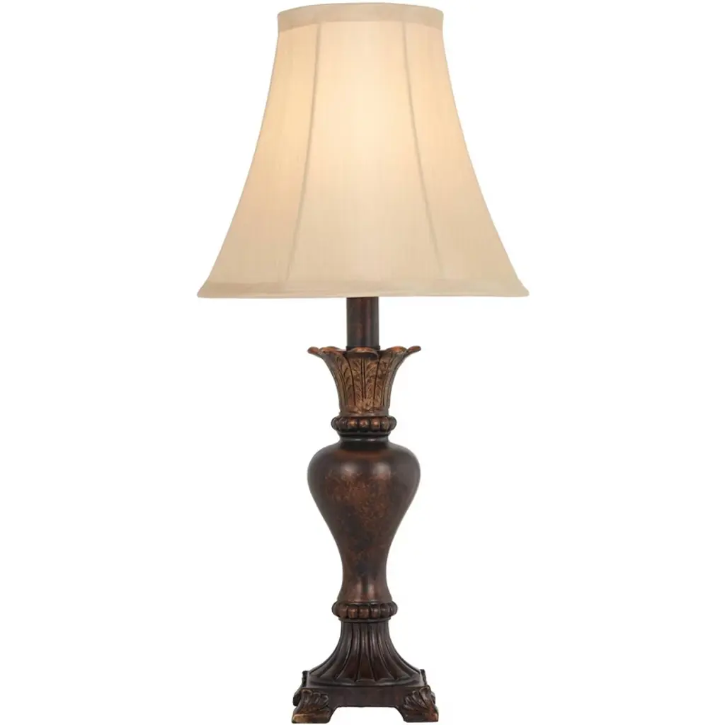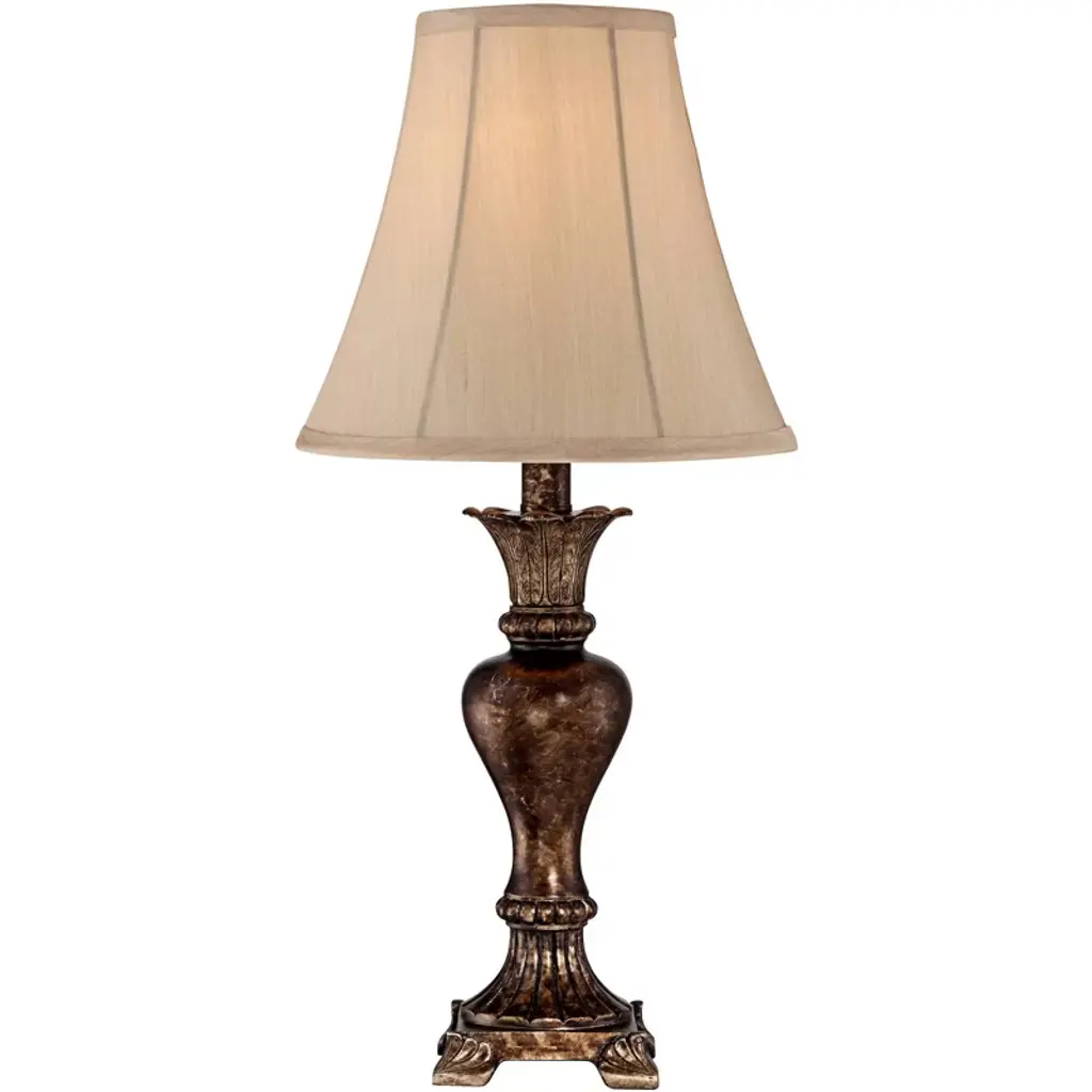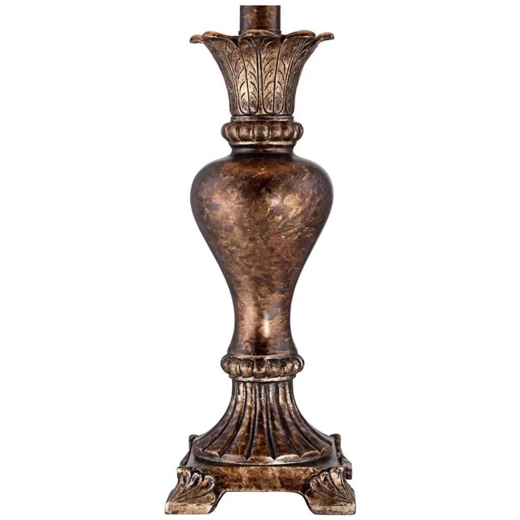 Add style and charm to your favorite setting with this design from the Regency Hill brand of lighting. The classic style features an elegant urn table lamp profile with a square pedestal base and traditional detailing. The base comes in a warm bronze finish that complements the natural tone in the bell lamp shade. Ideal for a formal living space, or use in a bedroom or on a hallway table.