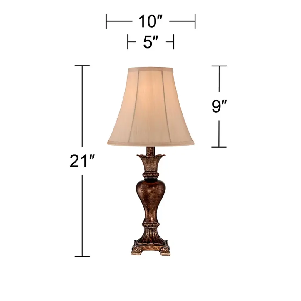 Regency Hill Xavier Traditional Accent Table Lamp 21" High Warm Bronze Urn Footed Base Natural Tone Bell Shade For Bedroom Living Room Bedside Office
