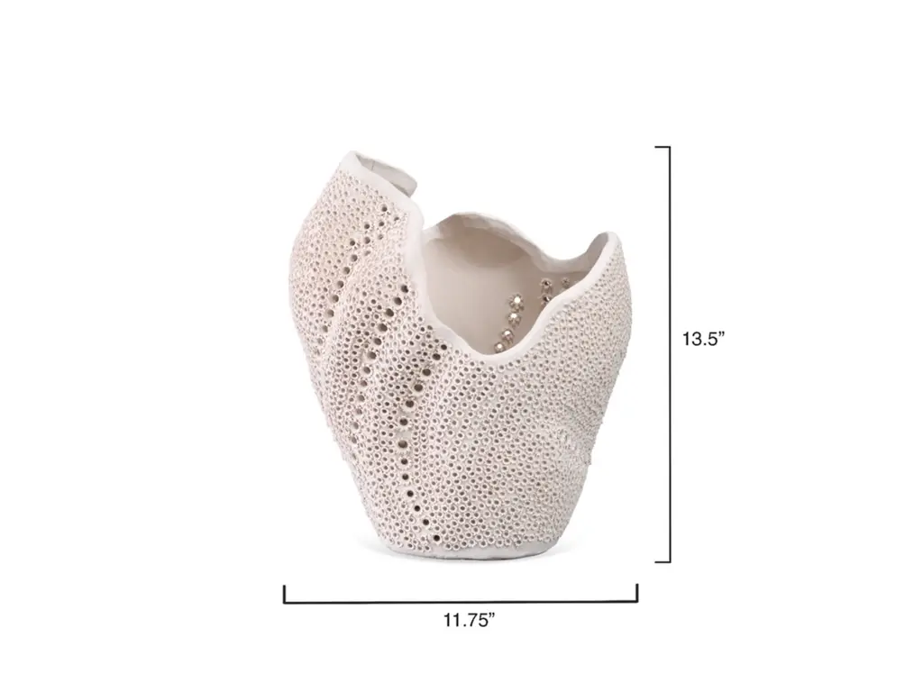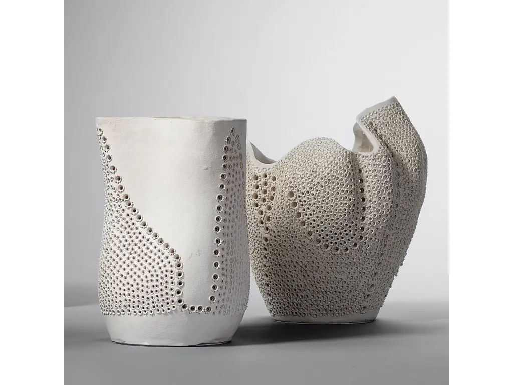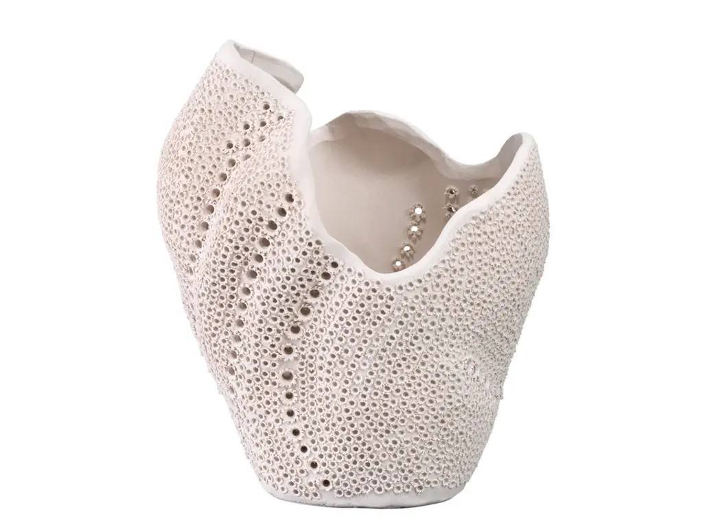 Sure to be a star among your collection, this decorative vase captures the celestial beauty of our moon in porcelain. Featuring an organic shape, matte finish and bold perforated patterns that are created one-at-a-time by talented artisans, ensuring each is an individual work of art.