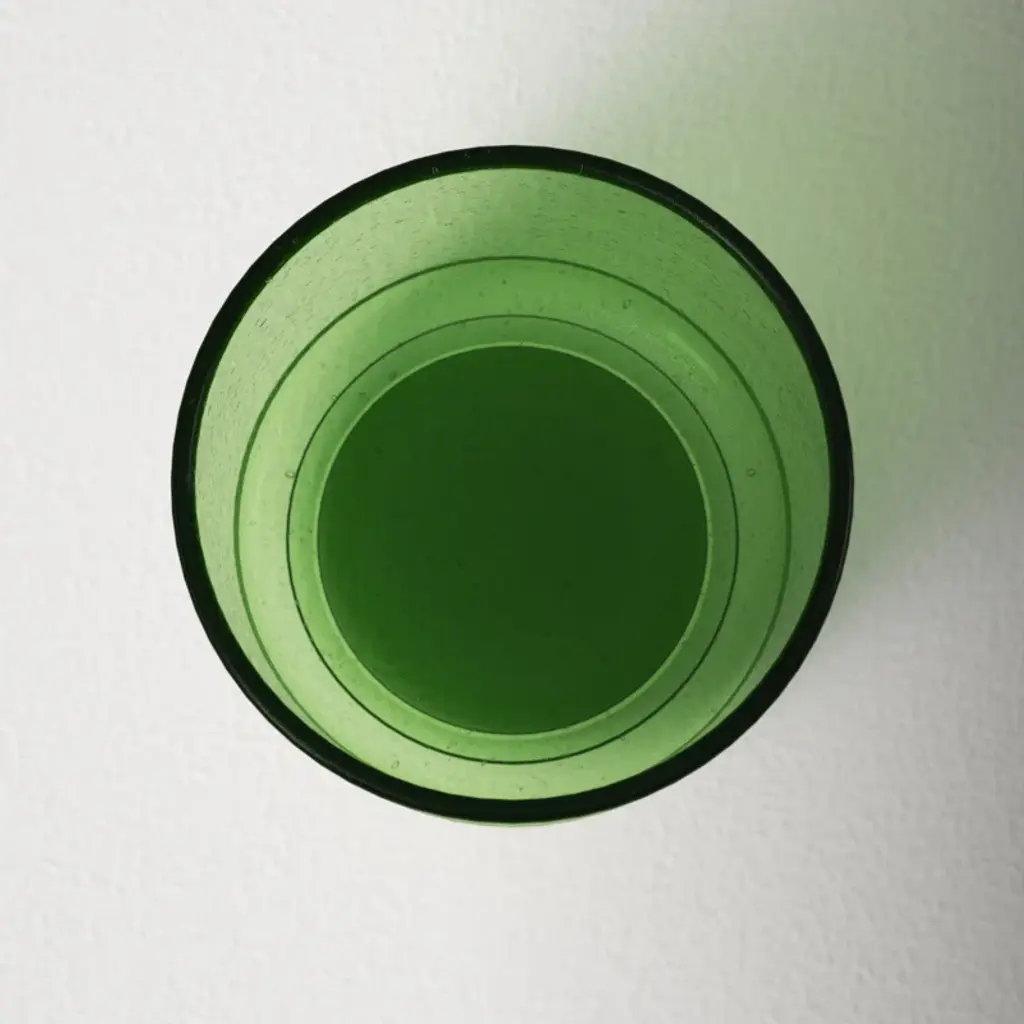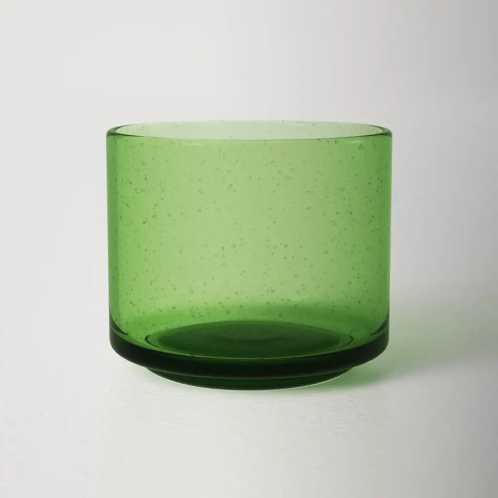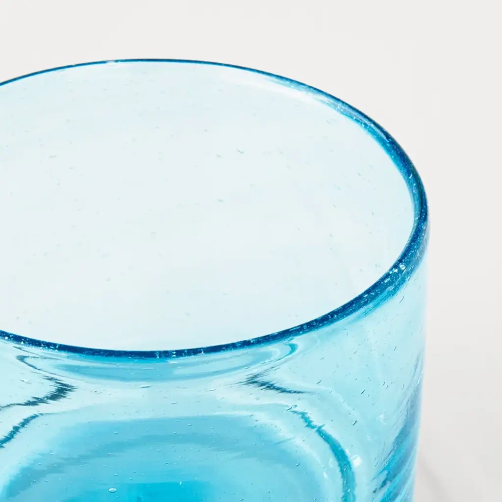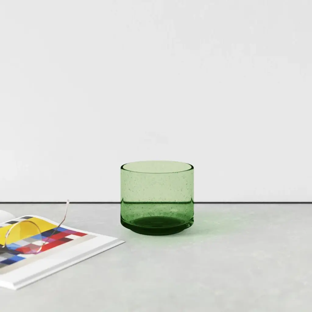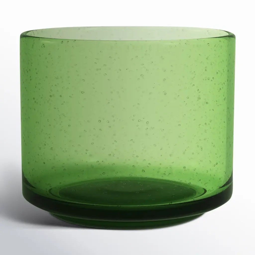 Bring the outdoors in. With its vivid color and clean cylindrical shape, this table vase elevates foraged backyard flowers + grocery store bouquets. It’s crafted from hand-blown glass, shot through with effervescent air bubbles that add distinctive character and sparkling dimension.
