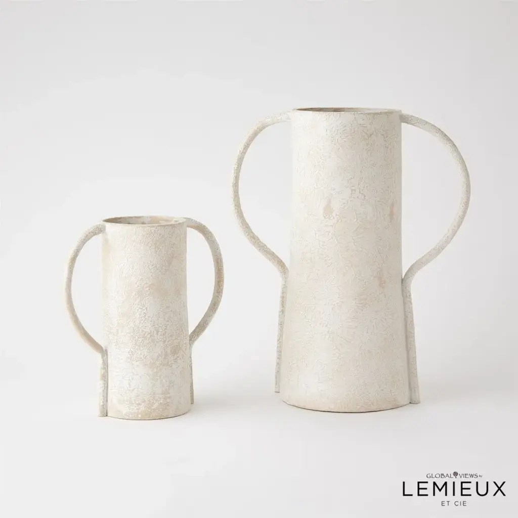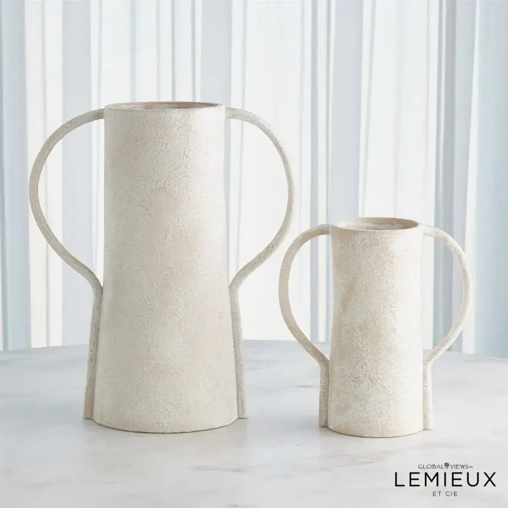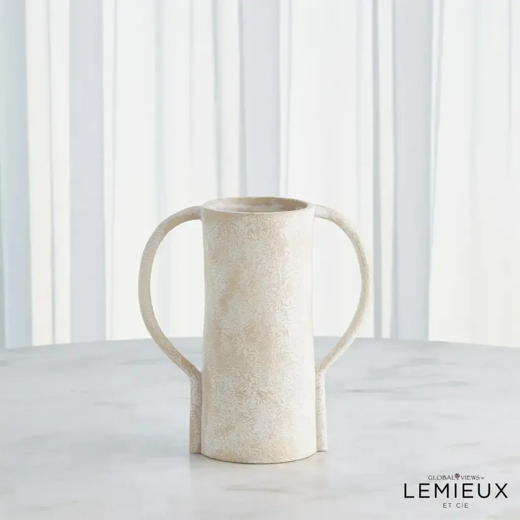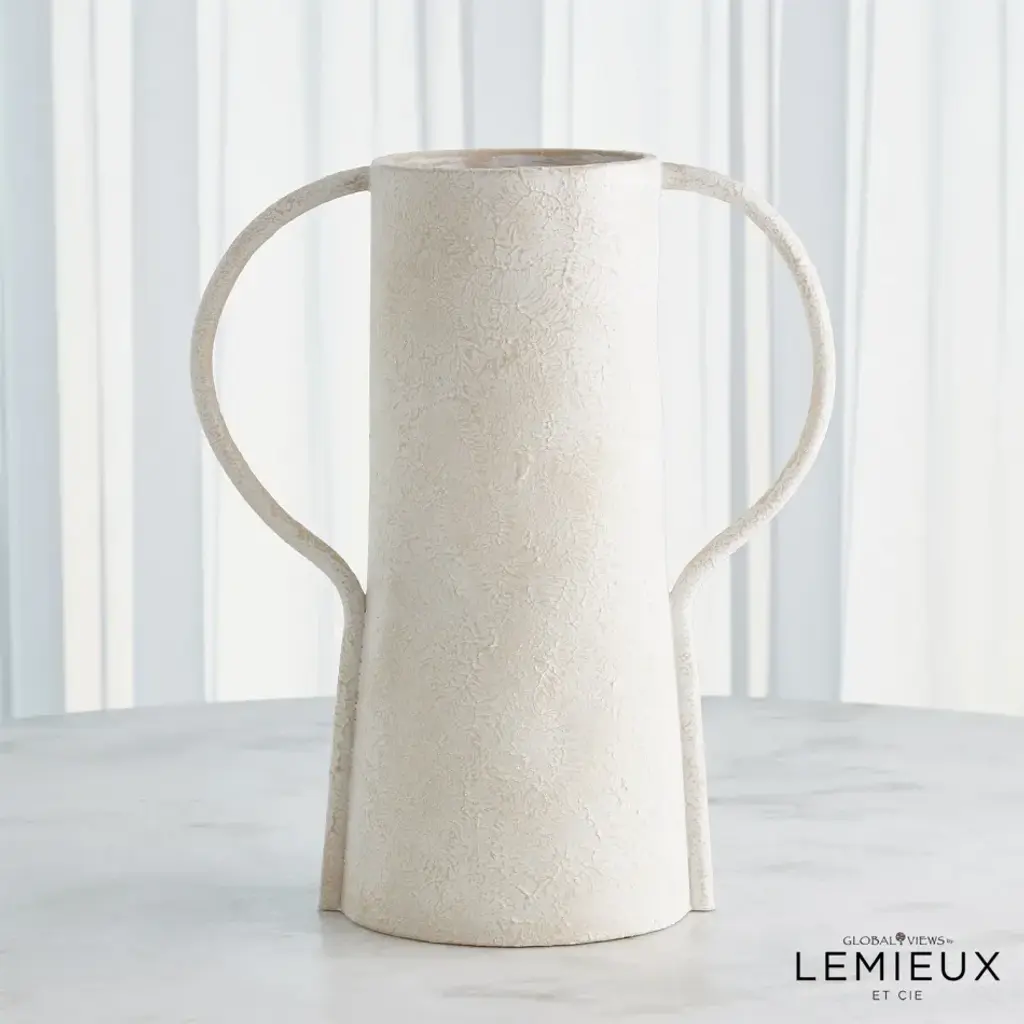 The Rhone Vase is a perfect balance of artistic expression and functional design. Meticulously crafted by skilled artisans, the vase's organic form is beautifully complemented by the bold and striking oversized circle handles. The juxtaposition of delicate curves and statement handles creates a captivating visual contrast, making this vase a standout centerpiece that seamlessly blends artistry and functionality. From a fashion forward perspective, Global Views offers accessories, furniture, statement lighting, and an assortment of rugs and mirrors to add beauty and joy to your home.