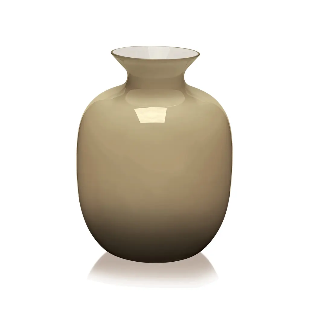The Rialto Vase collection from IVV showcases expertly crafted mouth-blown flashed glass pieces in a range of sizes. Each vase features a luminous white interior contrasted by an exterior in gray, tobacco, light blue, or white. Designed for versatility, these vases can be displayed individually or artfully combined to create distinctive furniture accents that elevate any interior with subtle elegance. Highlights