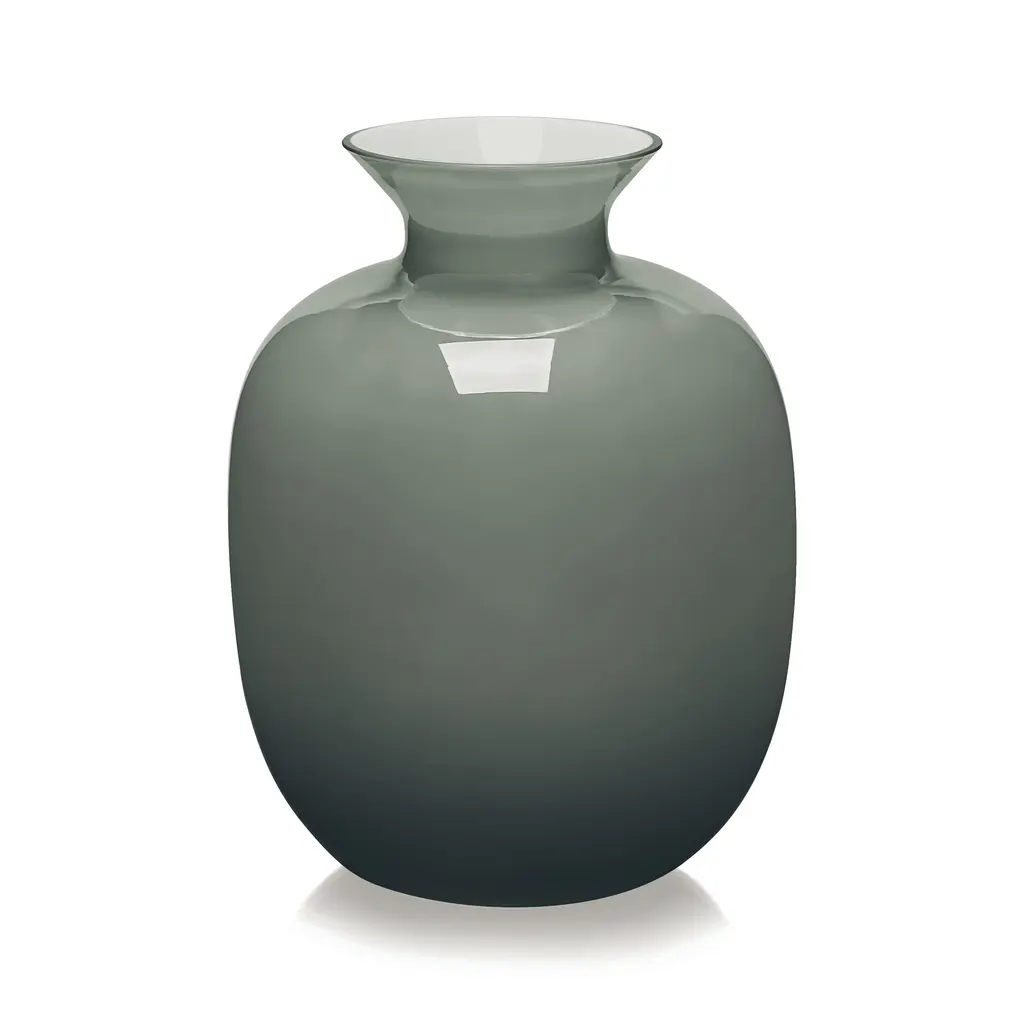 The Rialto Vase collection from IVV showcases expertly crafted mouth-blown flashed glass pieces in a range of sizes. Each vase features a luminous white interior contrasted by an exterior in gray, tobacco, light blue, or white. Designed for versatility, these vases can be displayed individually or artfully combined to create distinctive furniture accents that elevate any interior with subtle elegance. Highlights