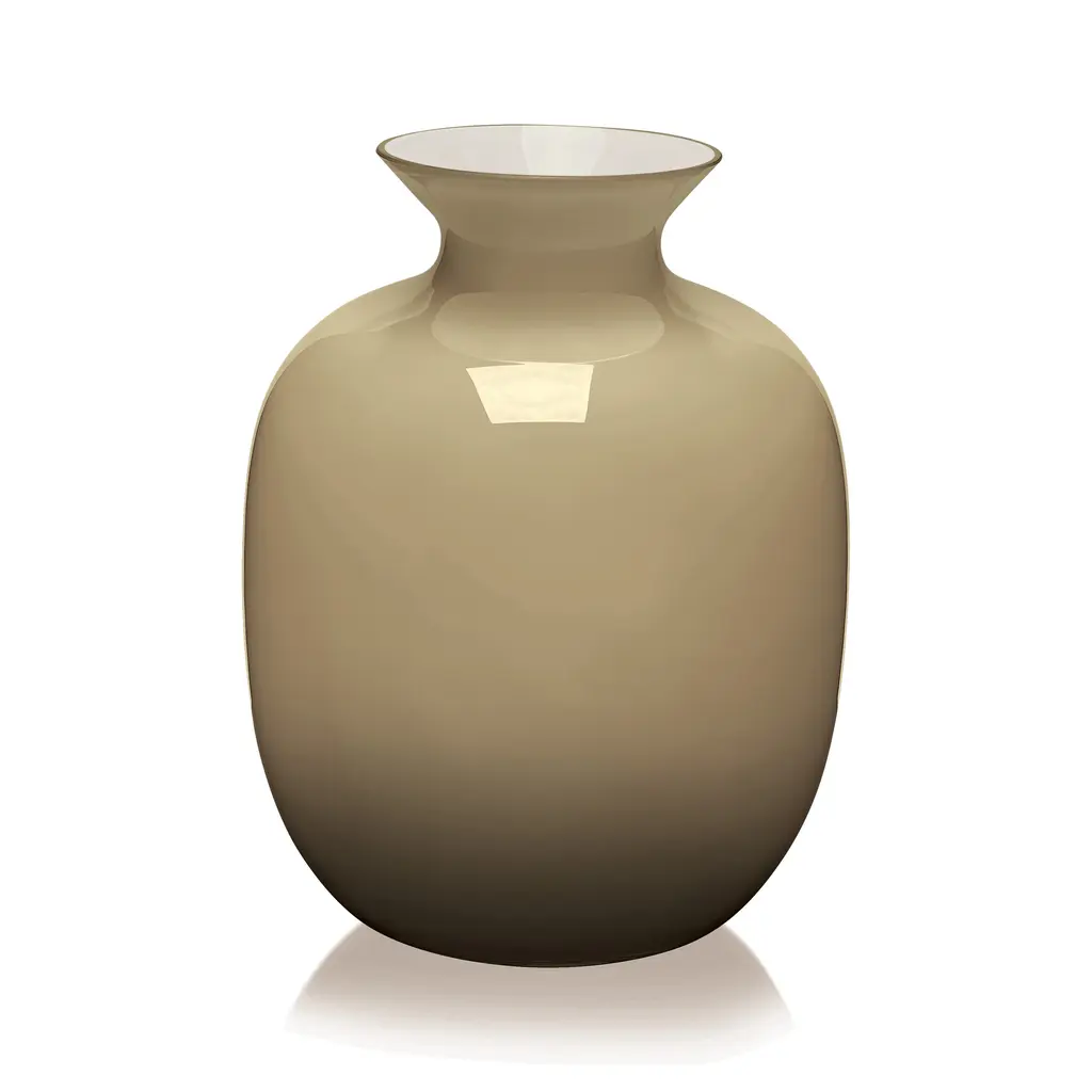 The Rialto Vase collection from IVV showcases expertly crafted mouth-blown flashed glass pieces in a range of sizes. Each vase features a luminous white interior contrasted by an exterior in gray, tobacco, light blue, or white. Designed for versatility, these vases can be displayed individually or artfully combined to create distinctive furniture accents that elevate any interior with subtle elegance. Highlights
