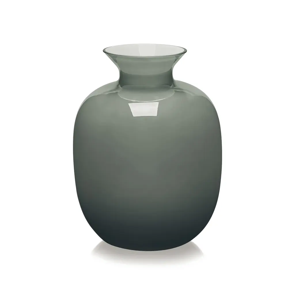 The Rialto Vase collection from IVV showcases expertly crafted mouth-blown flashed glass pieces in a range of sizes. Each vase features a luminous white interior contrasted by an exterior in gray, tobacco, light blue, or white. Designed for versatility, these vases can be displayed individually or artfully combined to create distinctive furniture accents that elevate any interior with subtle elegance. Highlights