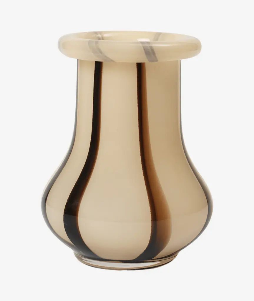 Add a unique touch to your home decor with the Riban Vase from Ferm Living. Handcrafted from glass in a playful and whimsical design, it pays homage to the traditional art of making sugar sweets. Each piece is carefully shaped to showcase the skill of the artisan, making it a delightful fusion of tradition and artistry. Highlights