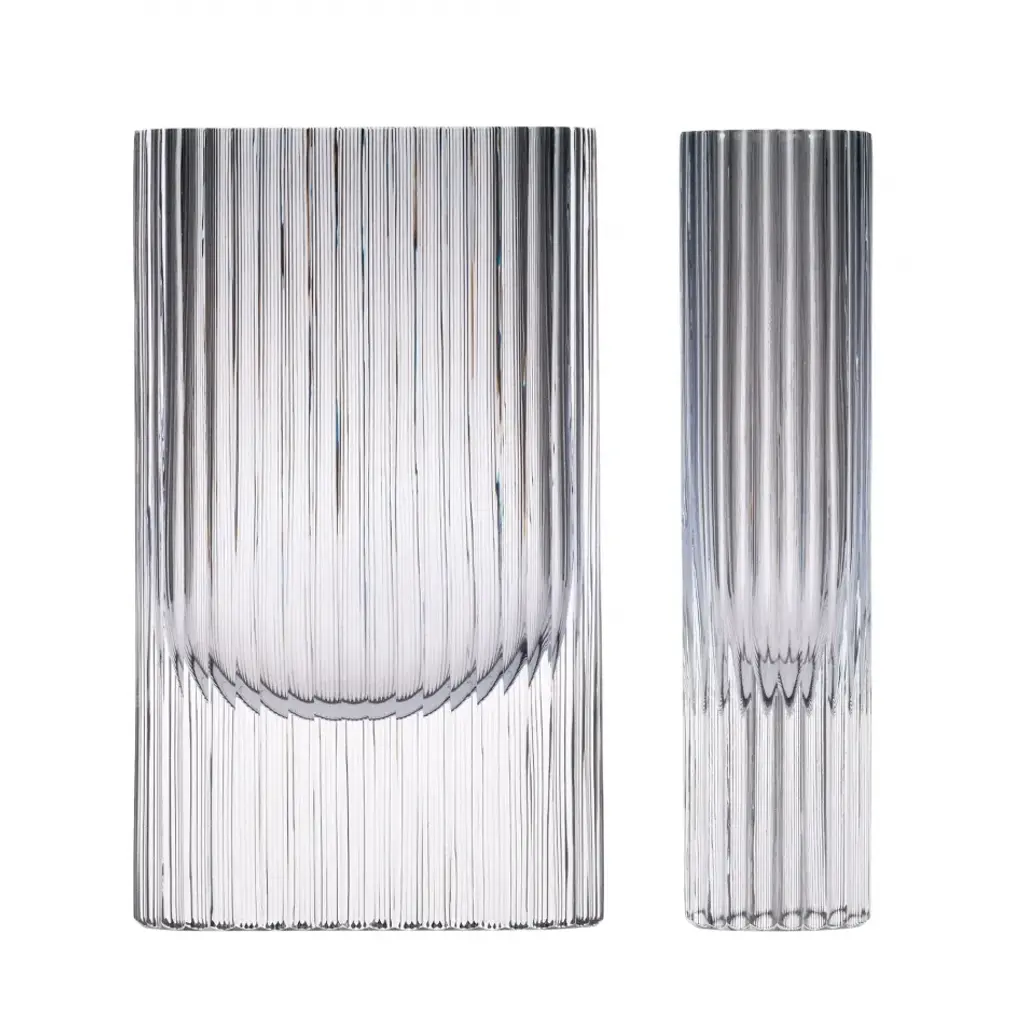 Ribbed Glass 11.8 X 5.9 Inch Vase In Smoke