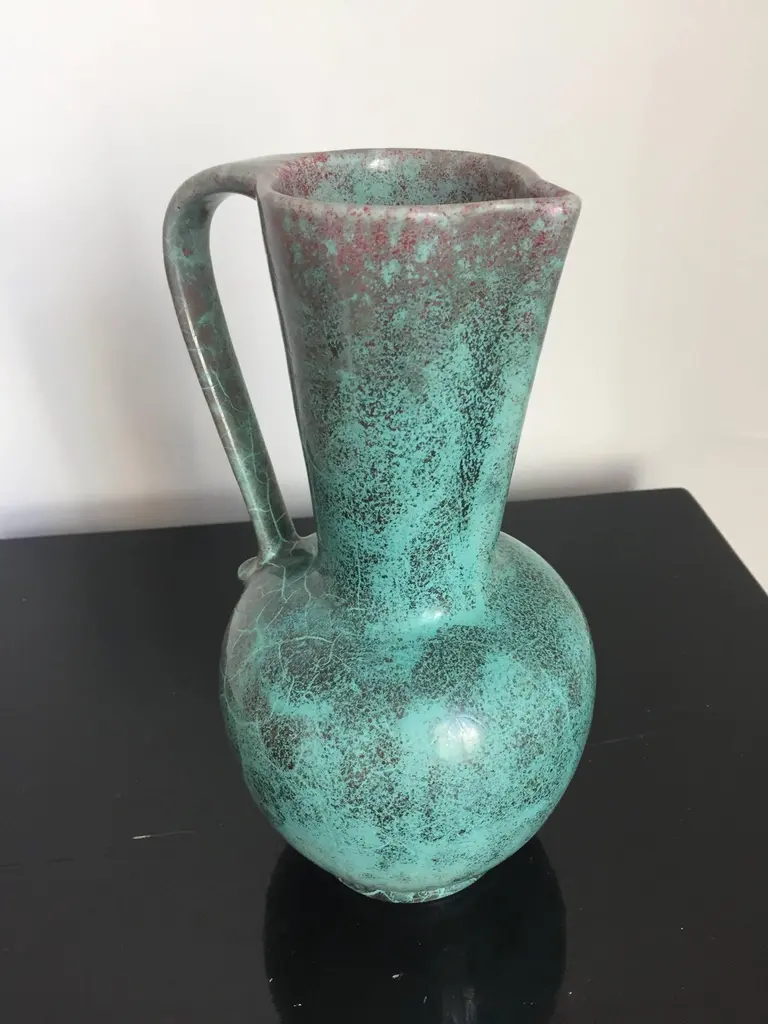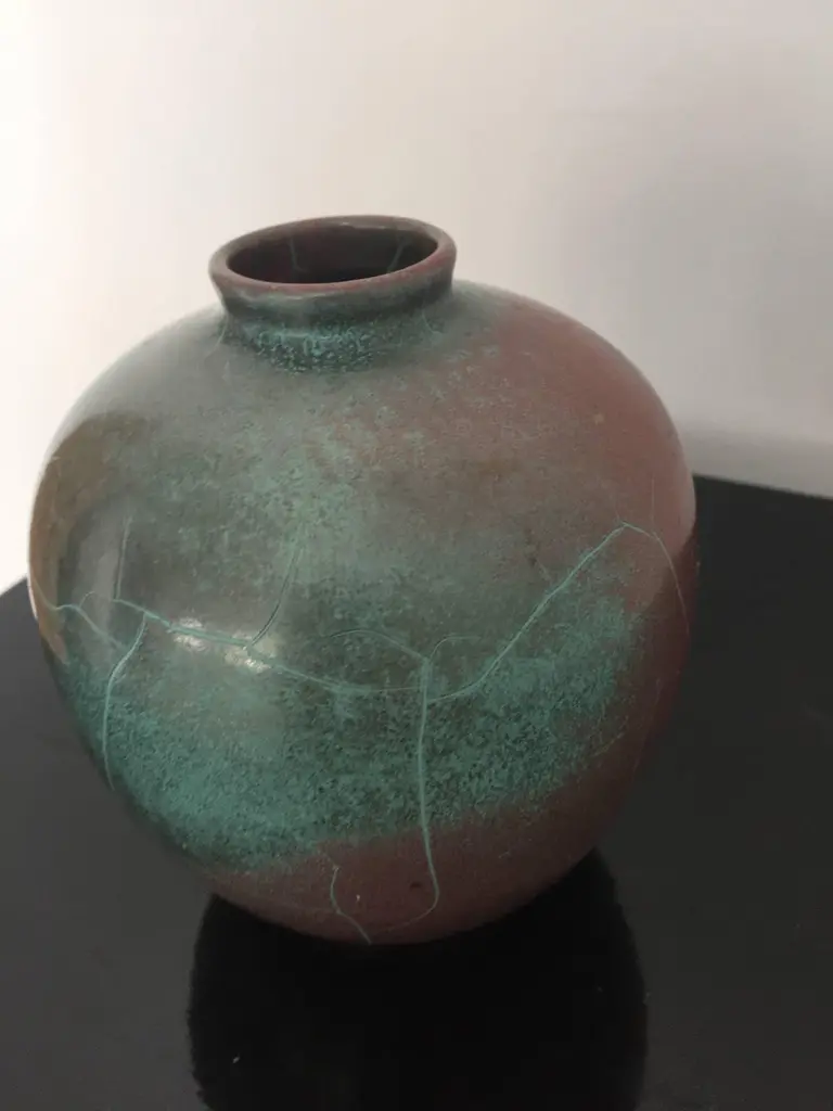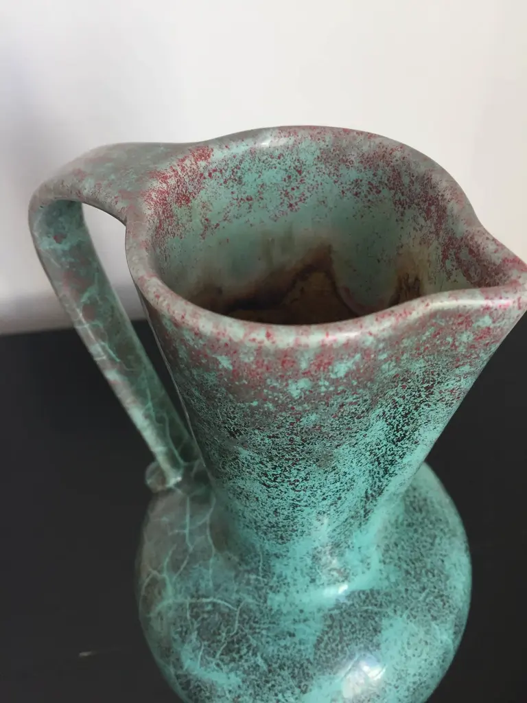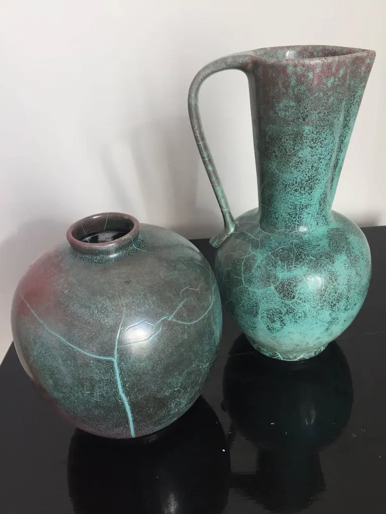 Richard Uhlemeyer Vase And Jar Ceramic German Pottery Green And Terra Cotta Red