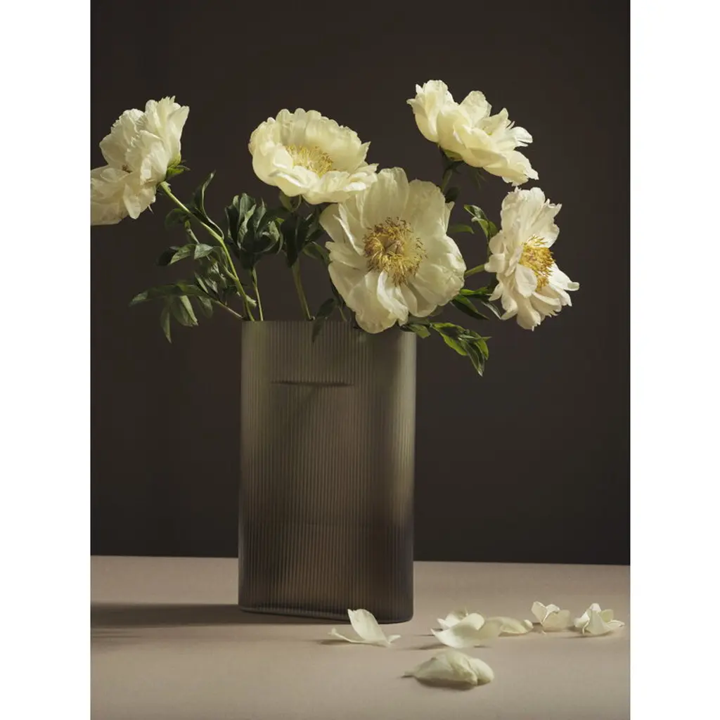 Ridge Vase, 35 Cm, Taupe Frosted Glass